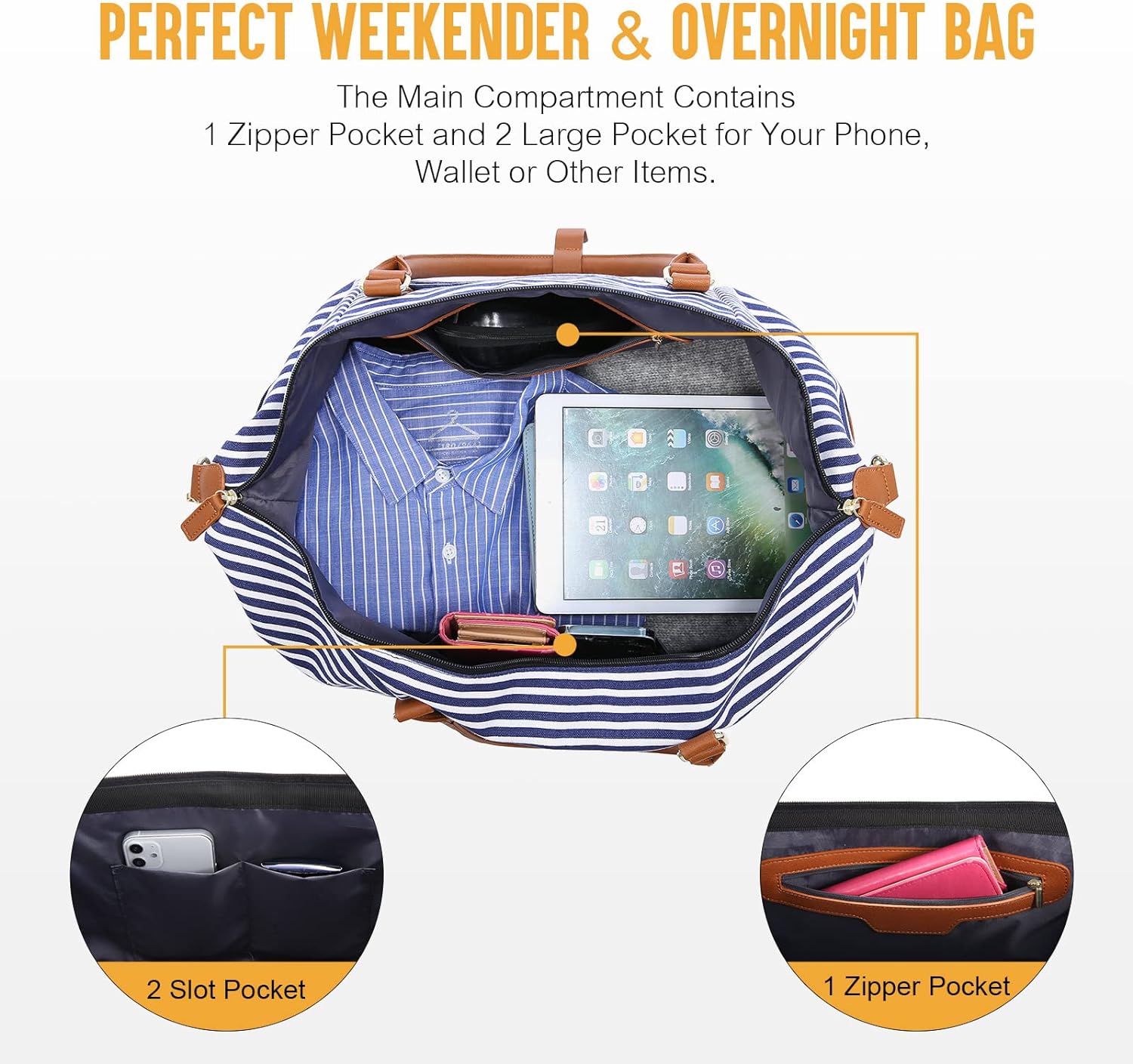 • 【FREE TOILETRY BAG】: The overnight bag also comes with a 14USD toiletry bag that is convenient for the people who love travelling. This toiletry travel bag is also made of canvas and PU leather, which is known for its lightweight yet durable qualities, the perfect combination for traveling.