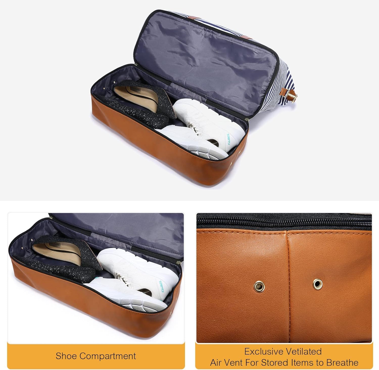 • 【SHOE COMPARTMENT】: This weekender bag for women travel has a shoe compartment that height 4 inches which is more higher than other bags on the market.It can stores your shoes and keeps your shoes or dirty clothes separate from the main compartment.