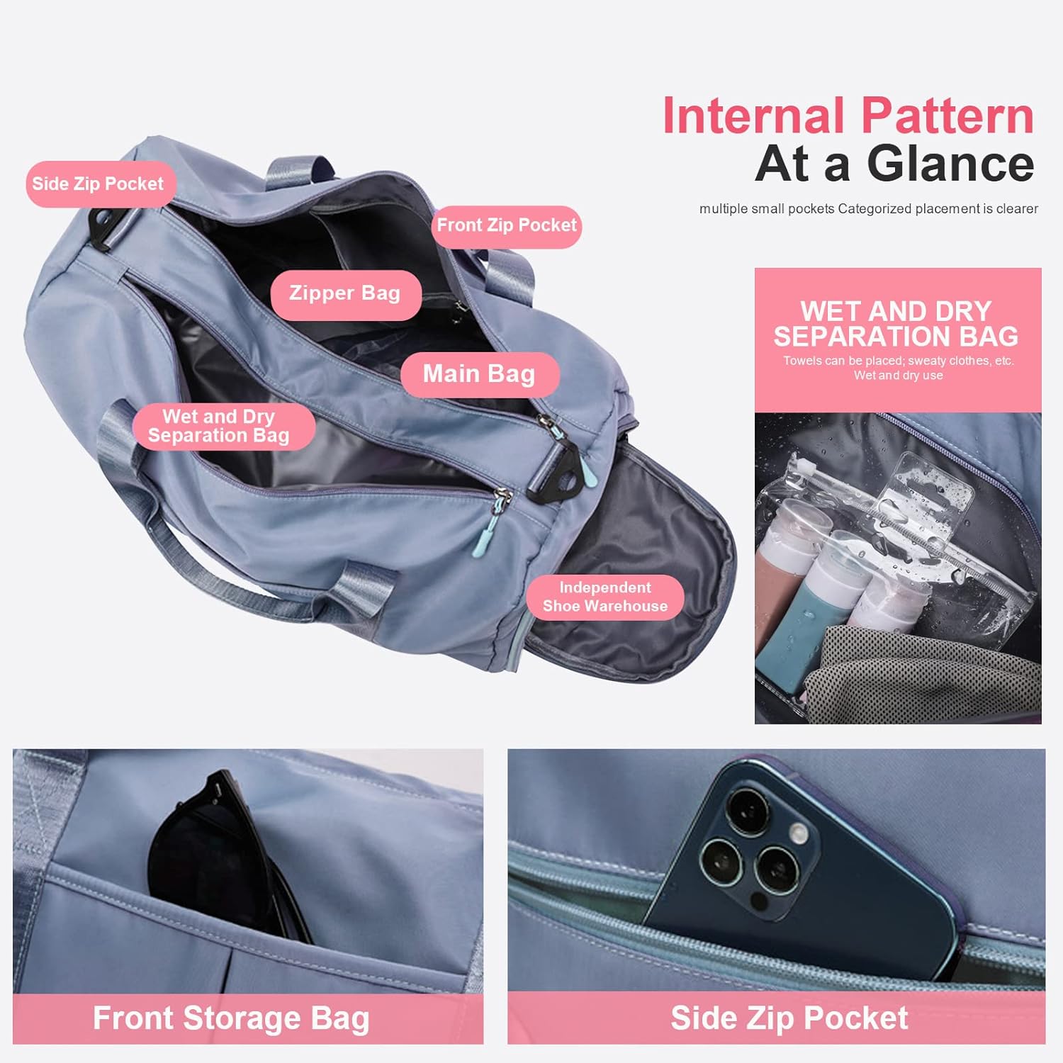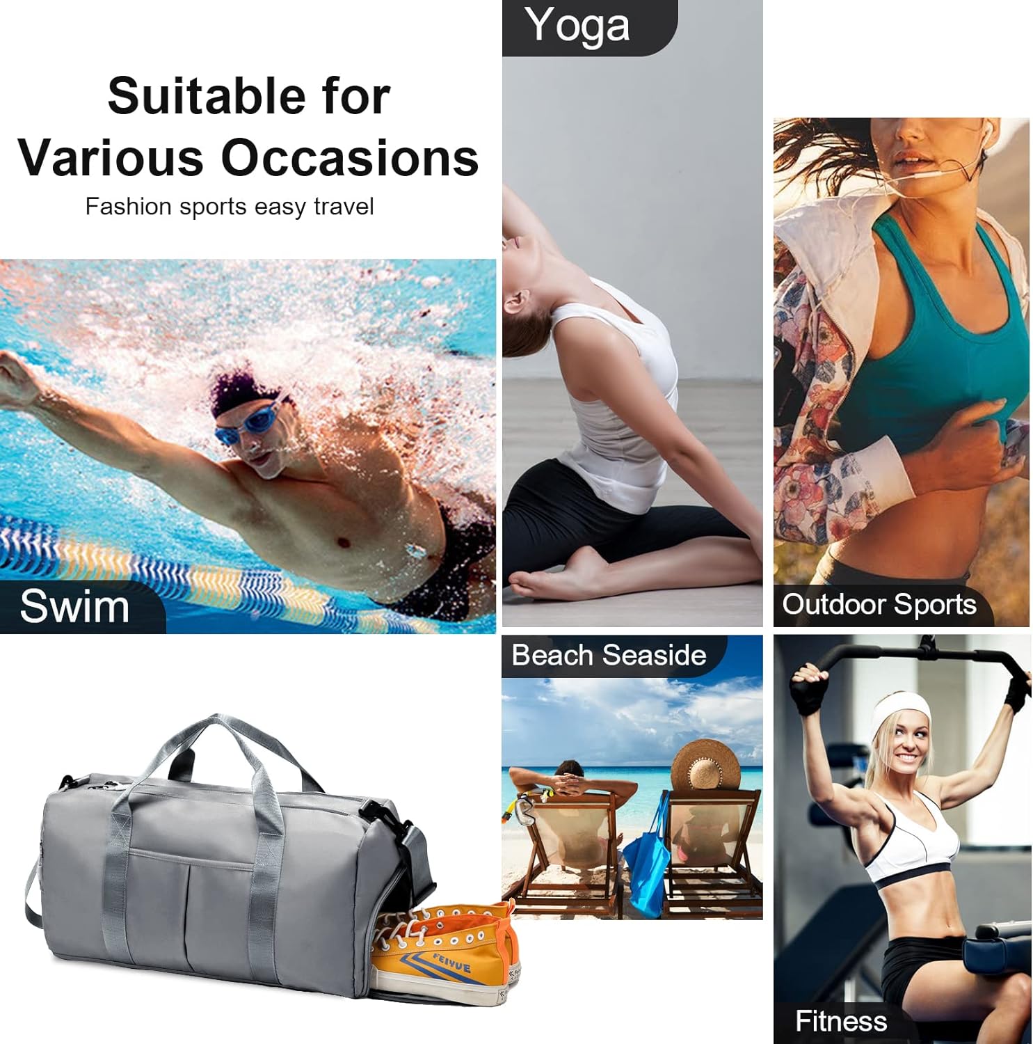 • 【Dry Wet Separated Sports Bag】: This sports tote gym bag uses high-density waterproof materials to help you separate dry and wet items. Suitable for storing wet clothes or towels in activities such as playing ball, running, fitness and swimming.