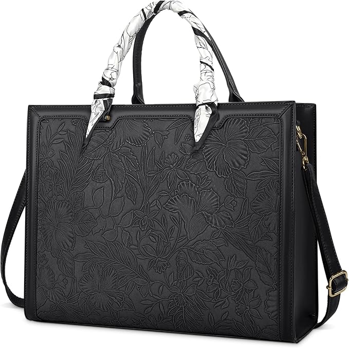 Laptop Bag for Women 15.6 Inch Tote Waterproof Leather Computer Business Lightweight Office Briefcase Large Capacity Handbag Shoulder Black