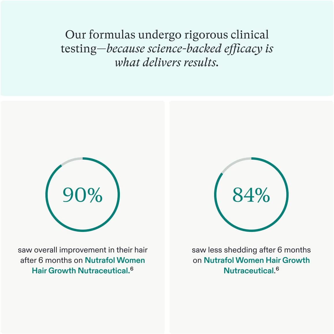 • CLINICALLY PROVEN: 90% of women saw improved hair overall, 86% saw better hair growth, and 84% saw less shedding after 6 months in a clinical study. Results may vary.