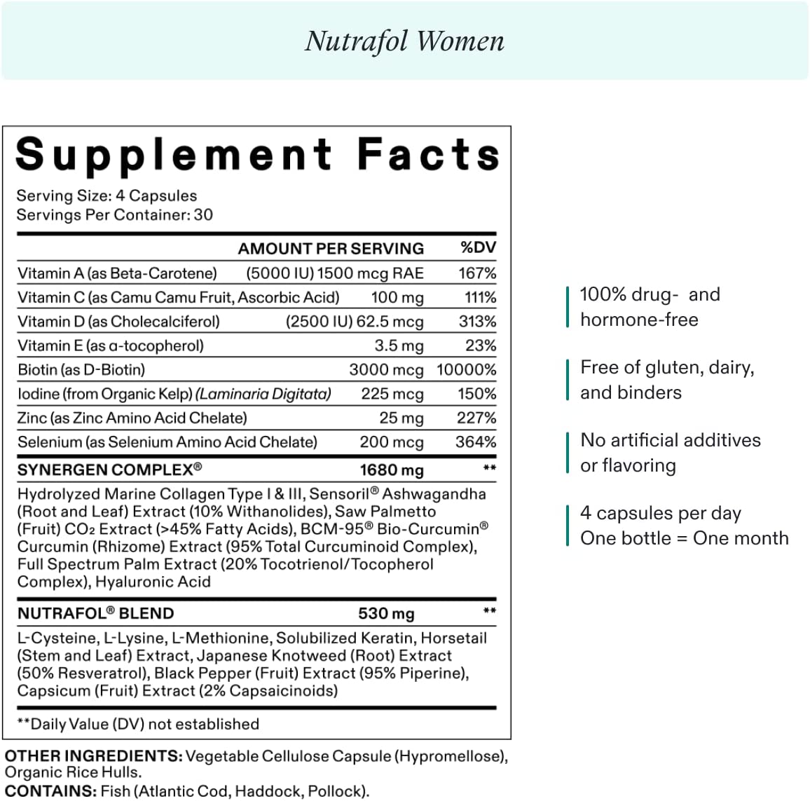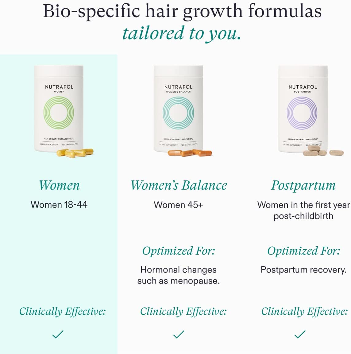 Nutrafol Women's Hair Growth Supplements, Ages 18-44, Clinically Proven for Visibly Thicker and Stronger Hair, Dermatologist Recommended - 1 Month Supply