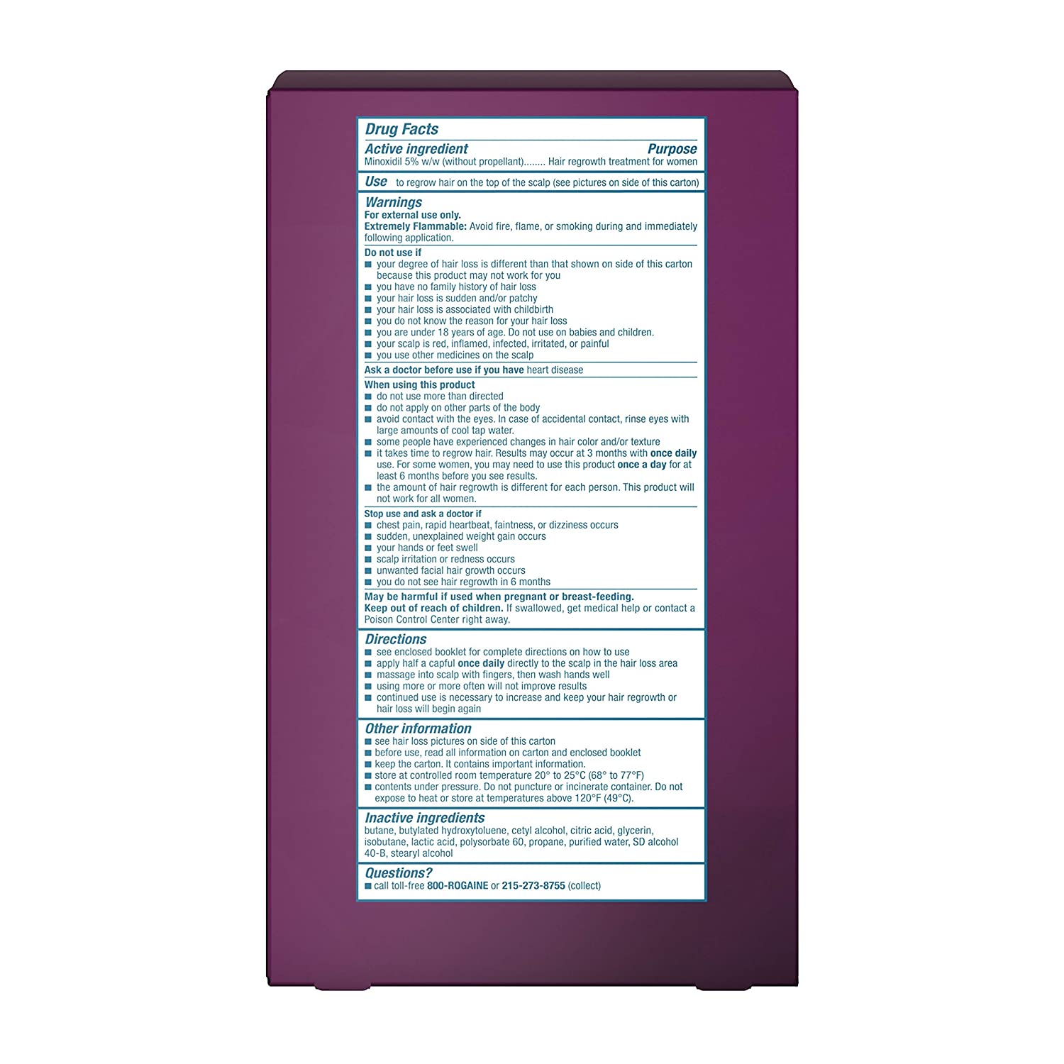 Help treat hair loss and regrow fuller hair with Women's Rogaine 5% Minoxidil Topical Foam. Ideal for use at the early stages of hair thinning, this hair regrowth treatment is specially formulated for women and is clinically proven to regrow more hair. This thinning hair foam penetrates the scalp to reactivate shrunken hair follicles, allowing for regrowth of hair. The 5% Minoxidil formula works to boost hair follicle activity and hair protein production, while Tricho-Prime Technology uses a proprietary combination of ingredients to create an optimal environment for hair regrowth. This hair growth treatment comes in a no-mess foam that is easy to use and is designed to fit easily into your daily beauty regimen with once-daily use. Based on hair count among men and women in clinical studies performed for approval, Jan 2006