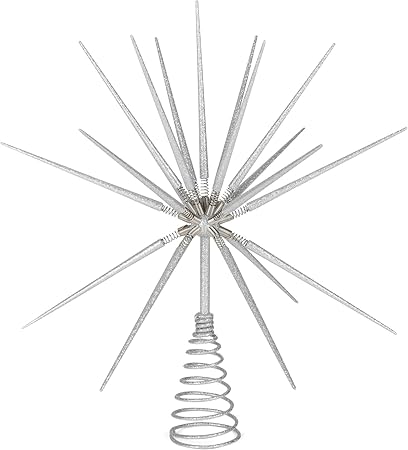 Roman 133173 Silver Burst Tree Topper with Spike on Spring, 15 inch