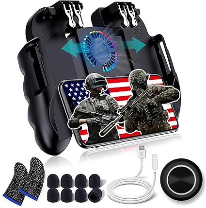 4 Trigger USB Mobile Game Controller with Cooling Fan Adjustable Stand for PUBG/Call of Duty/Fotnite [6 Finger Mode] GAMR+ L1R1 L2R2 Gaming Grip Gamepad