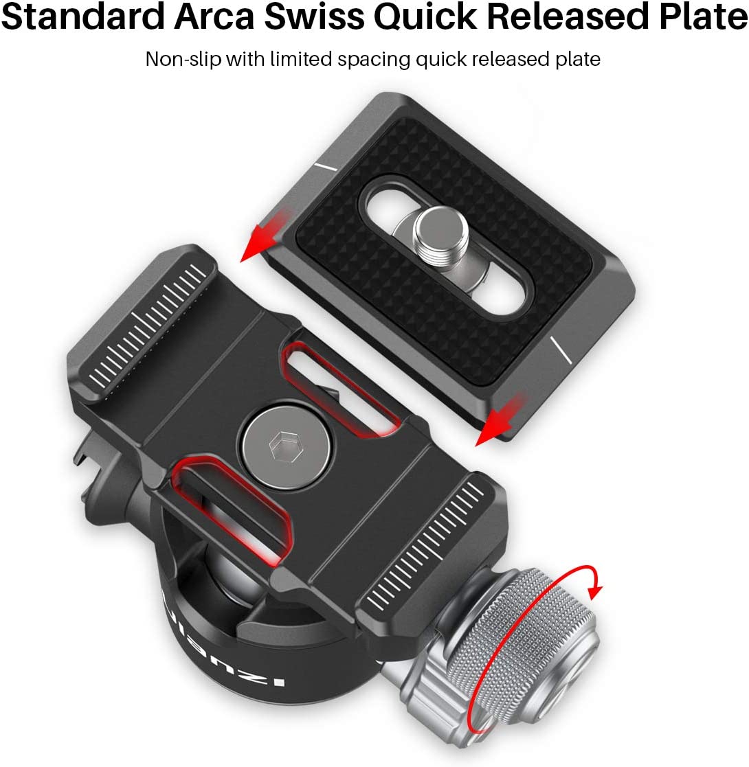 • 【ArcaSwiss + Quick Release Plate】- Arca Swiss + standard quick release plate, wide compatibility. There have limited screw to prevent the camera from falling. If you remove the limit screw, we reserve a place for you to save it to prevent loss.