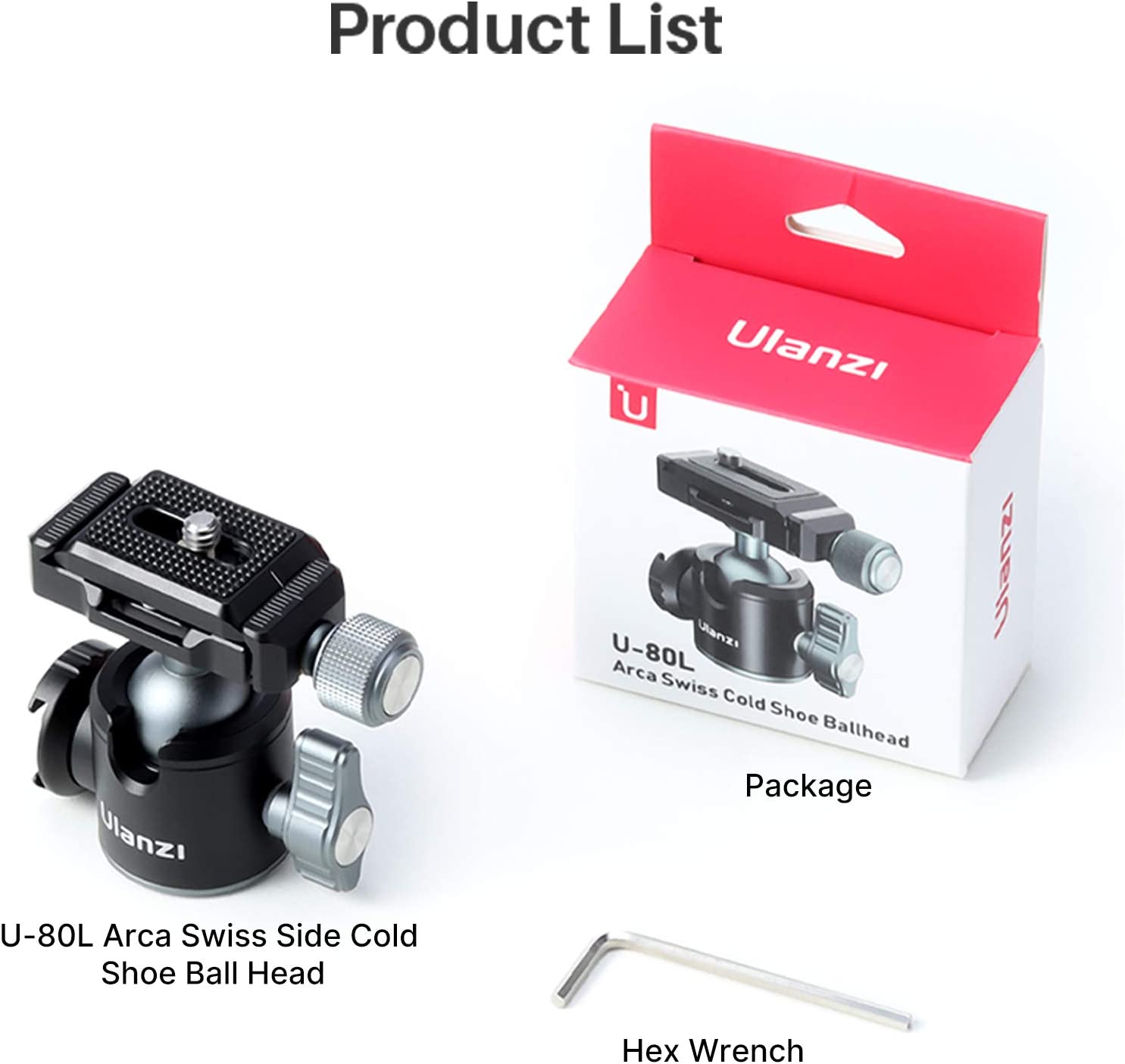 Tripod Ball Head ULANZI U-80L Camera Quick Release Metal Ball Head Camera Mount Arca Swiss 360° Rotating with Quick Release Plate & Cold Shoe, 22lbs/10kg Load for 1/4" Tripod,Monopod,DSLR,Camera