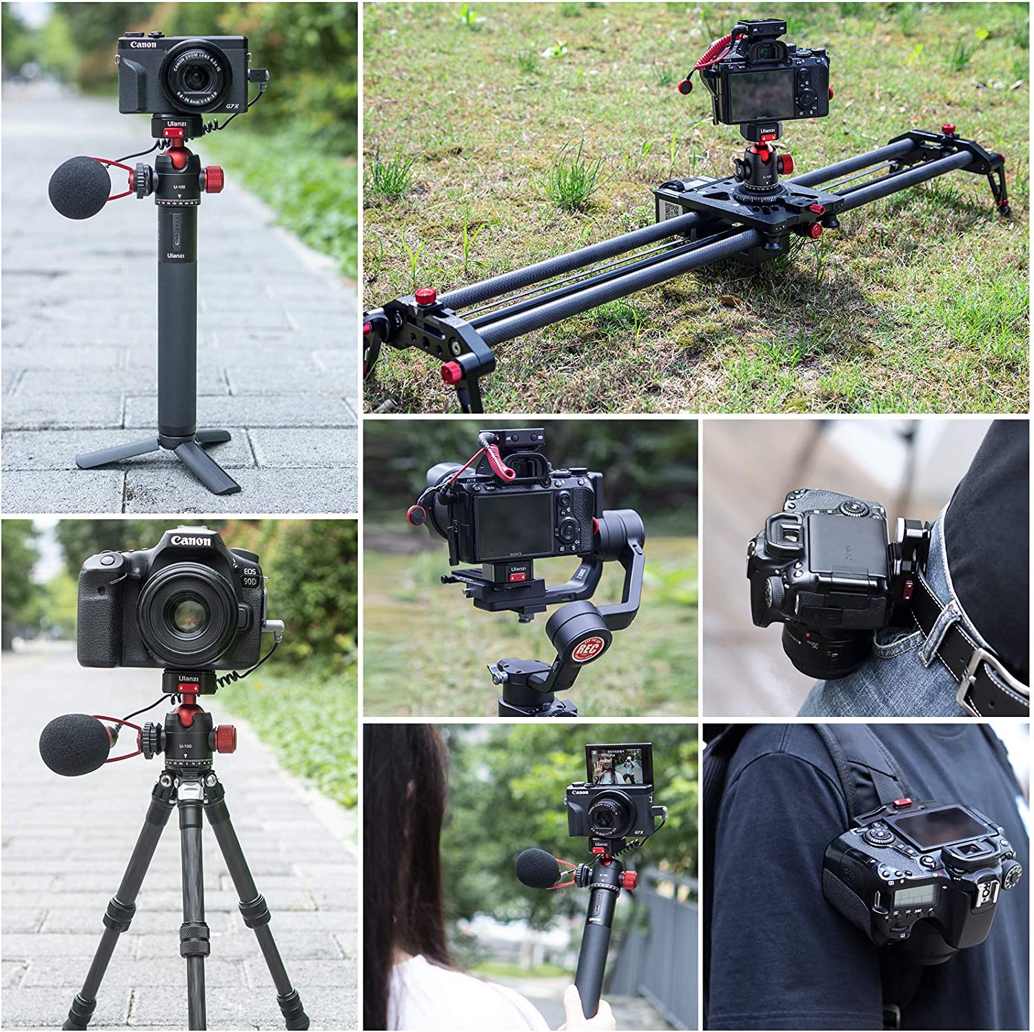 • Patenet CLAW quick release design and creative cold shoe design--ULANZI patent design offers camera Super Quick Release Mount instead of screwing, also offers vlog microphone mount solution.
