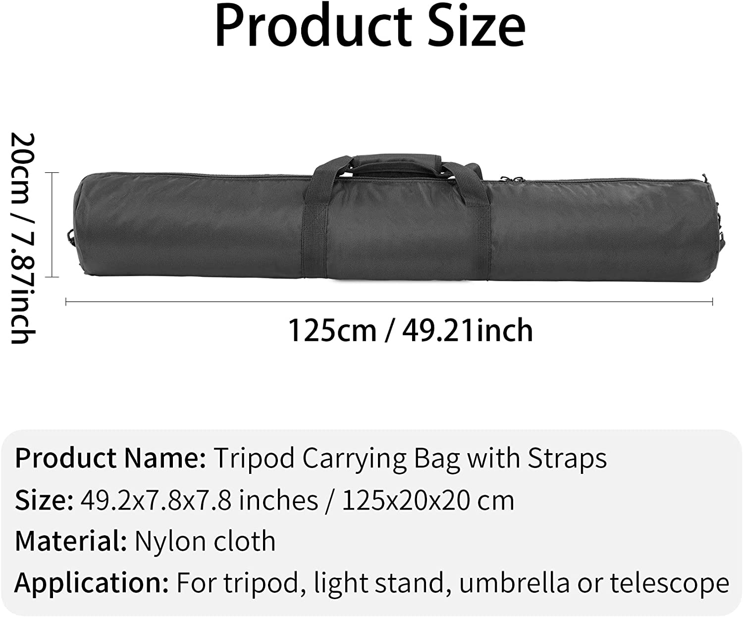 • Dimensions: 49.2x7.8x7.8inches / 125x20x20cm. Fit your tripod up to 49". Can be folded and stored when not in use
