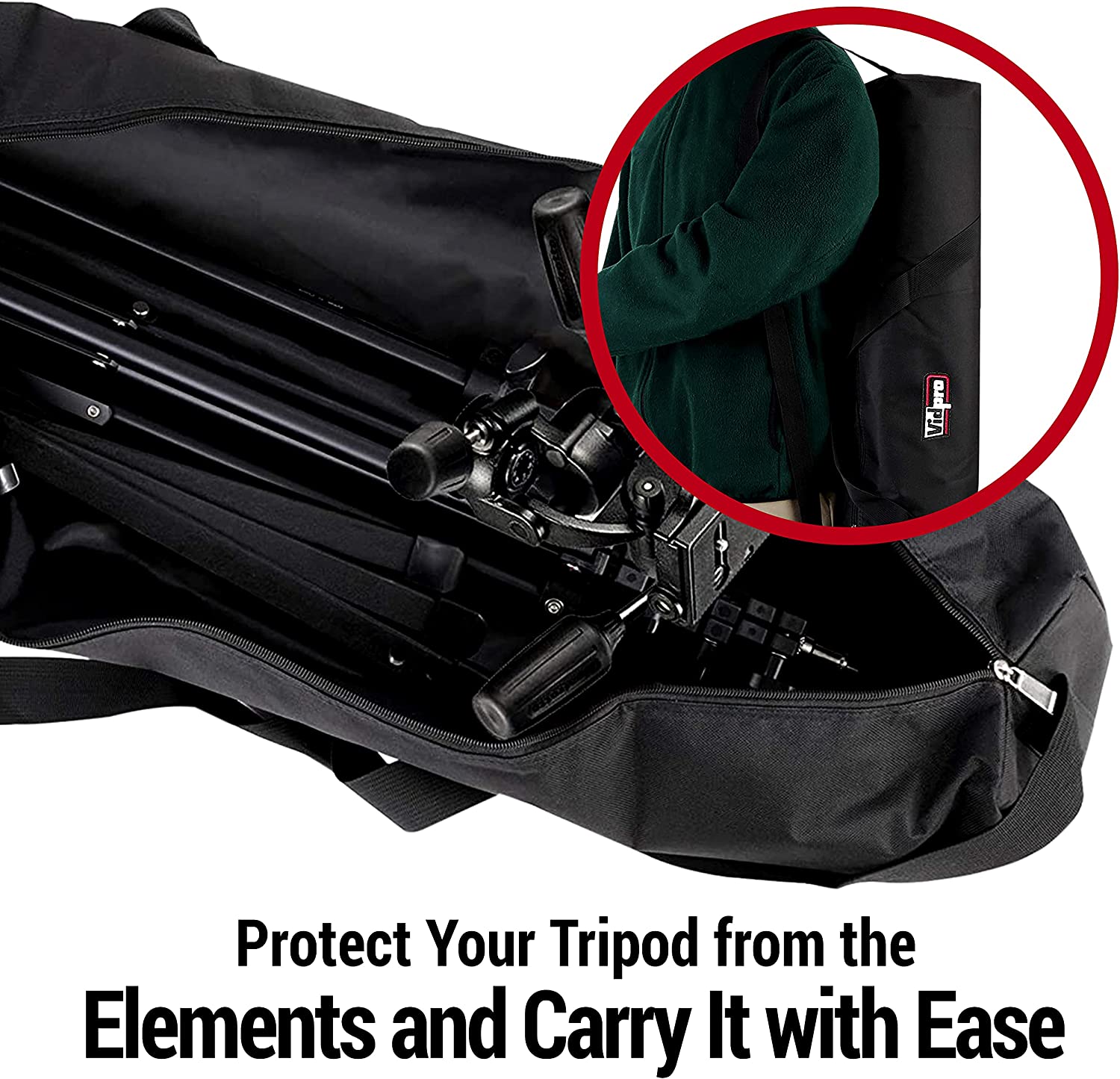 • Optimal Protection: Keep your tripod or light stand fully protected from dust and the weather. Vidpro’s TC-45 Tripod Carrying Case includes a full-length zippered closure for optimal protection, along with a zippered exterior pocket for other accessories.