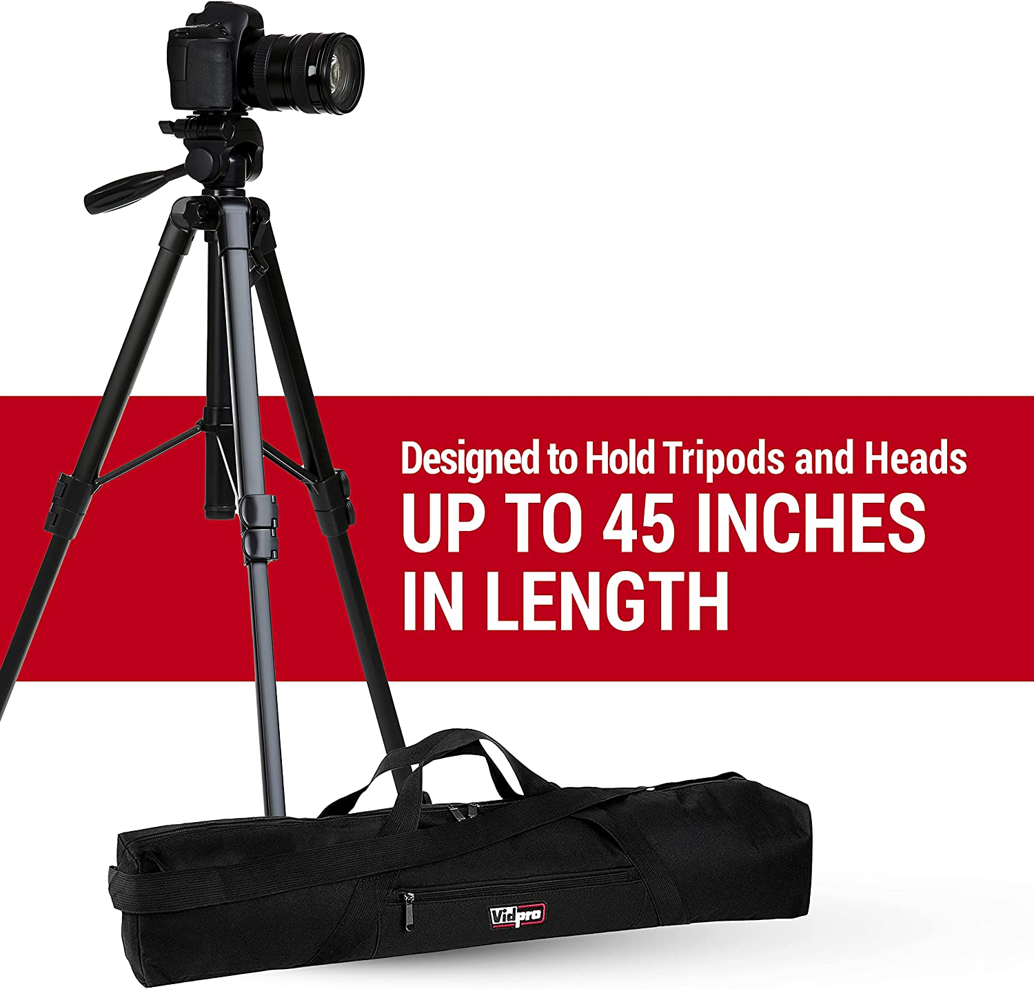 • Sufficient Space: Vidpro’s TC-45 Tripod Carrying Case measures 4.5” H x 4.5” W x 45" L in size, designed to hold your tripod with head up to 45 inches in length. It’s also suitable for carrying light stands.