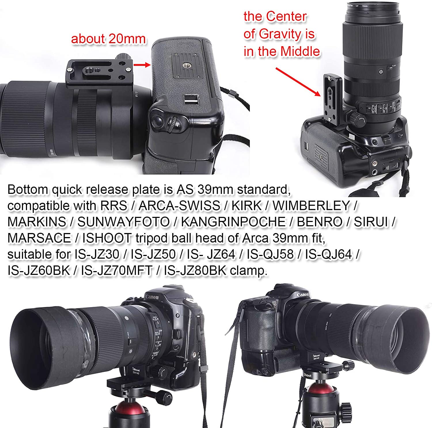 5. This lens holder bottom is AS standard quick release plate, compatible with RRS / ARCA-SWISS / ISHOOT tripod head of Arca 39mm fit, suitable for iShoot IS-JZ50 / IS-JZ64 / IS-QJ58 / IS-QJ64-FD / IS-JZ60BK / IS-JZ70MFT / IS-JZ80BK clamp.