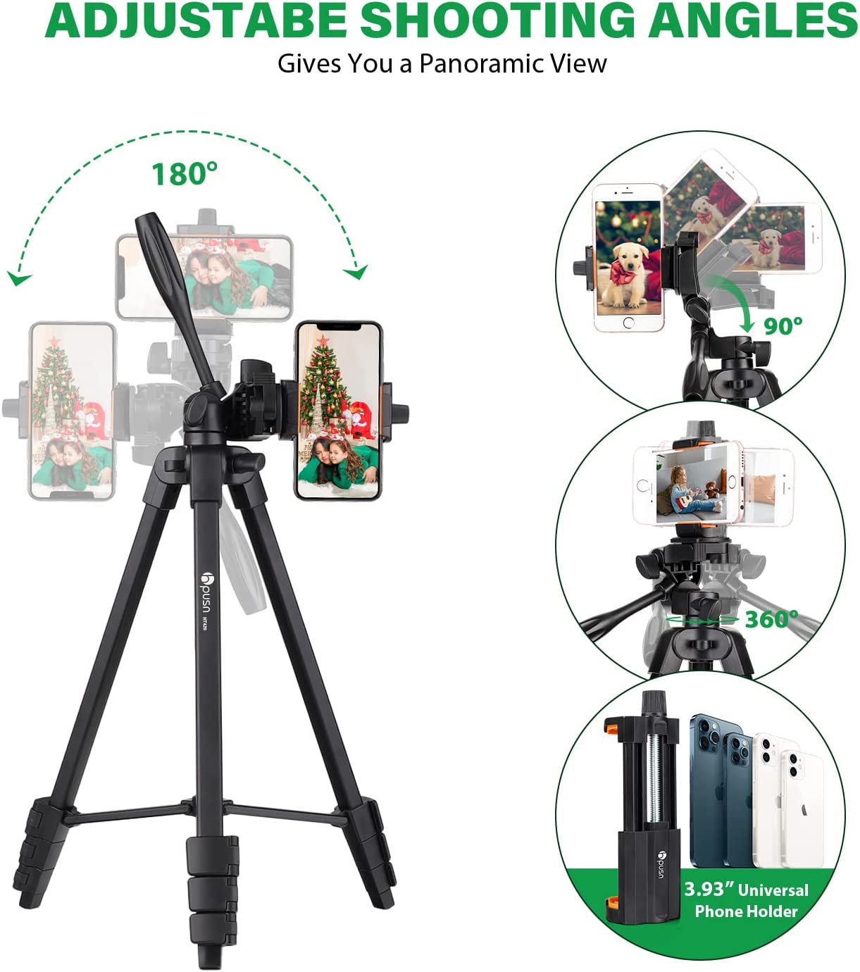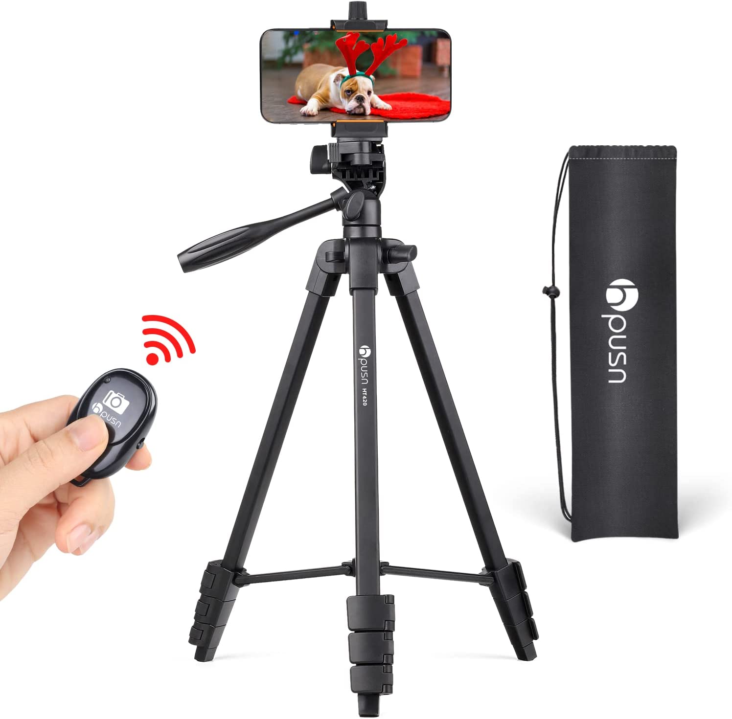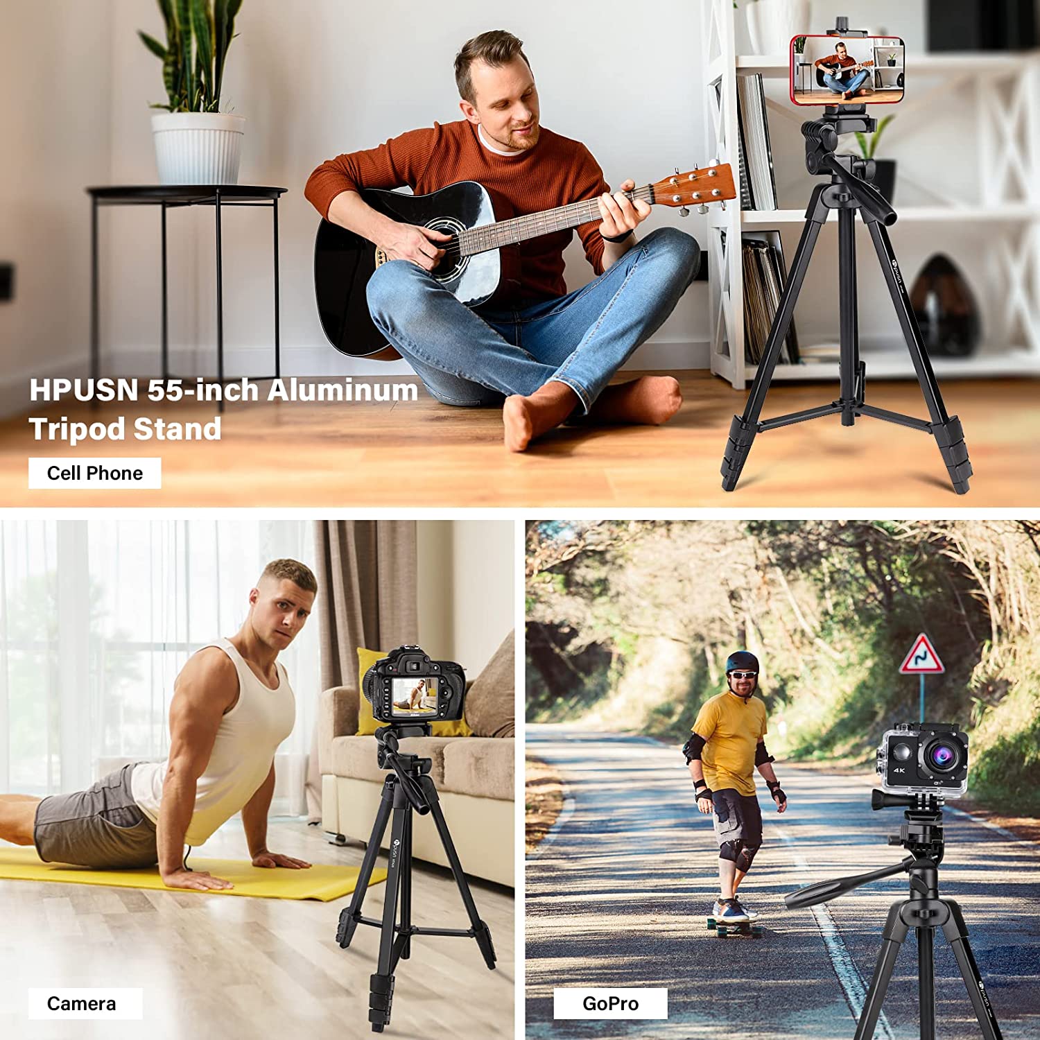 HPUSN Phone Tripod 55-inch Extendable and Lightweight Aluminum Tripod Stand Cell Phone Mount Holder, Wireless Remote, Portable Travel Tripod for Photography, Video Recording, Vlogging