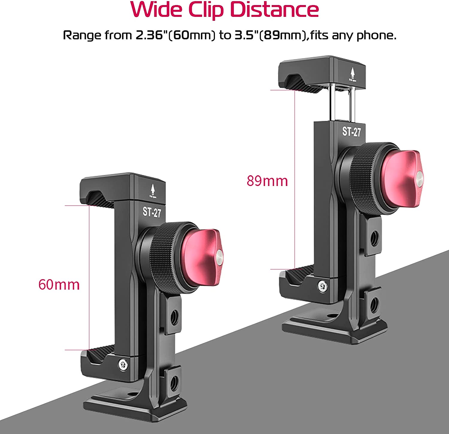 • 🏆【Side Double Cold Shoe Design】: ULANZI ST-27 with 2 cold shoes on the side, you can mount your fill light & microphone at same time. It is be the best choice for your vlog.