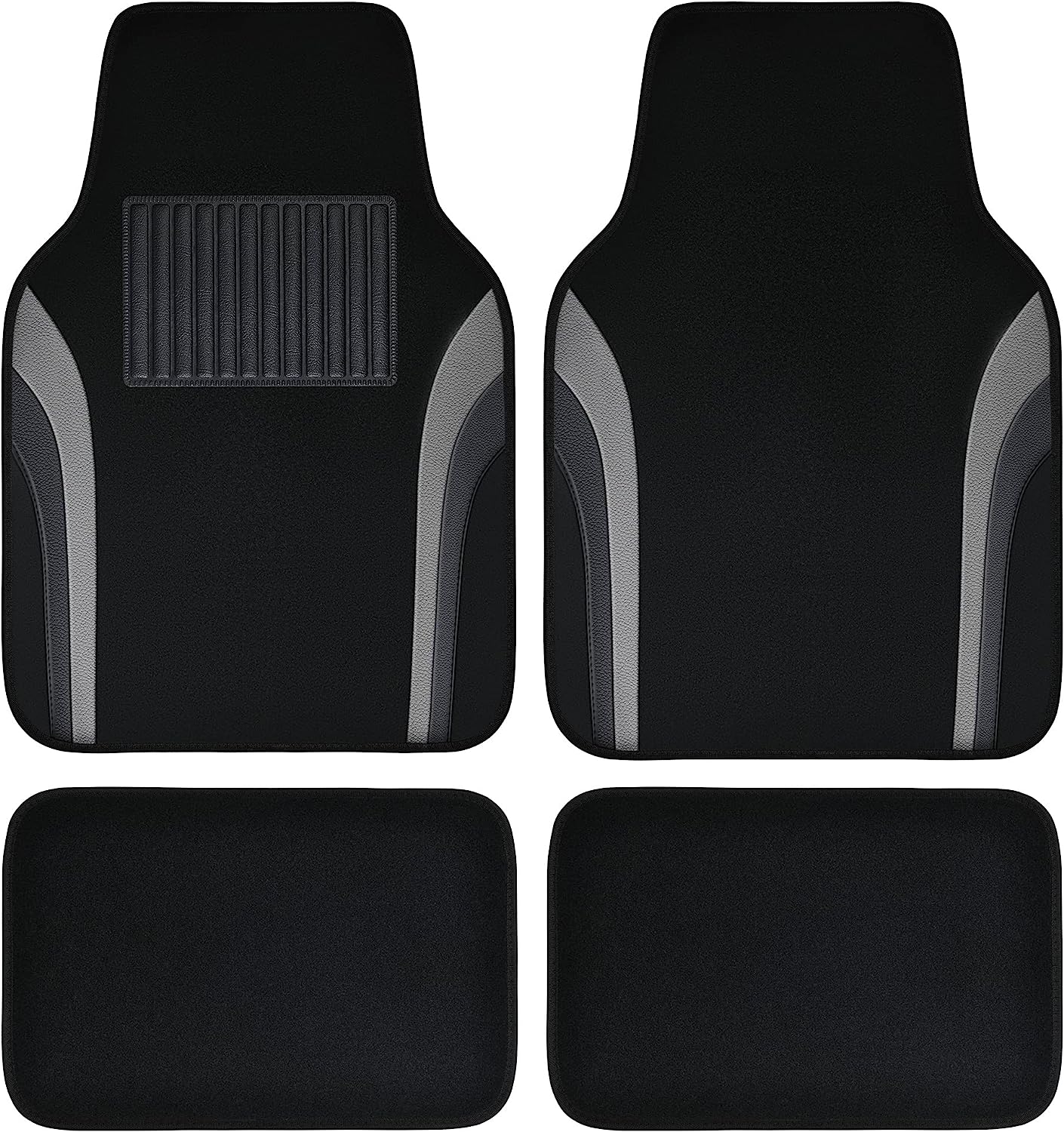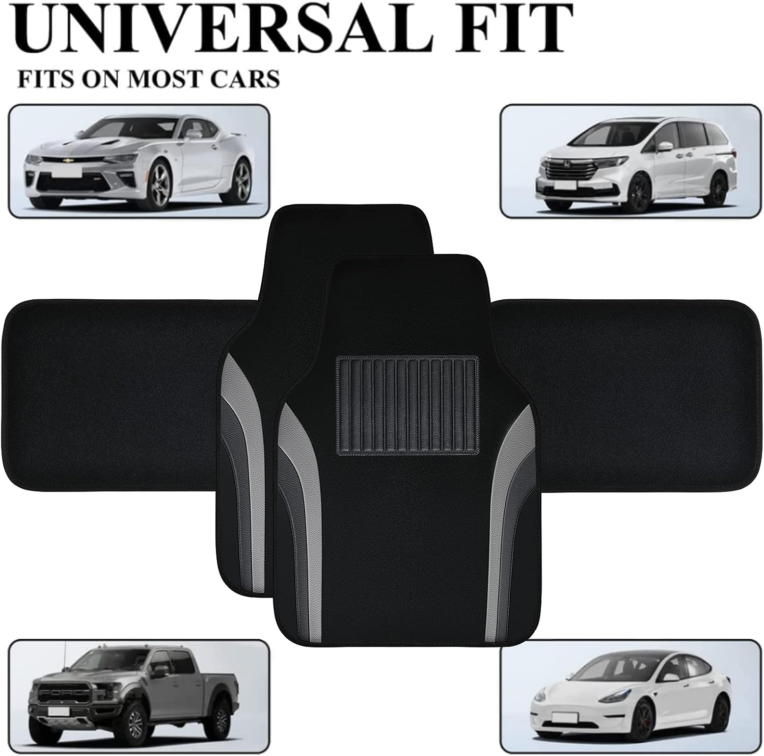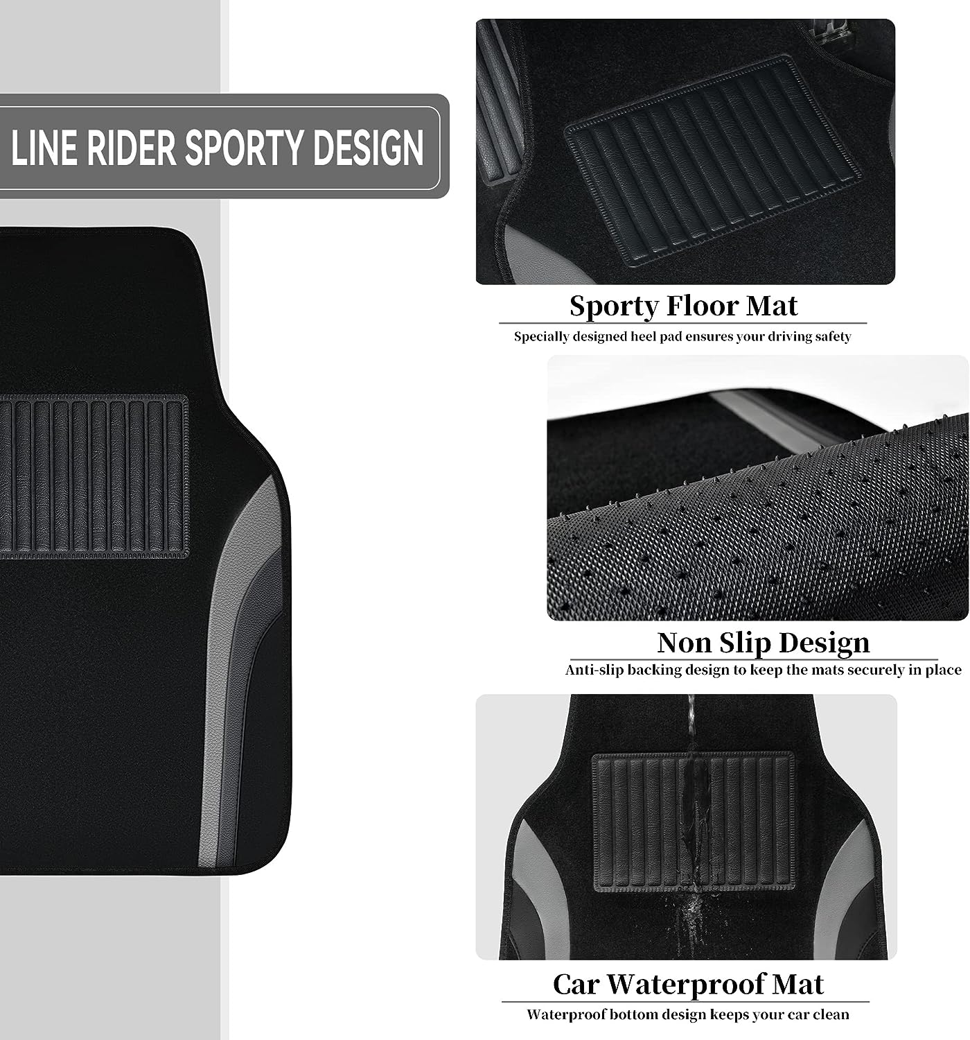 CAR PASS Leather Waterproof Sporty Car Floor Mats Carpet,Universal Automotive Floor Mat Fit for Sedans, Cars, Mid Trucks, Vans, SUV, Set of 4 (Black and Gray)