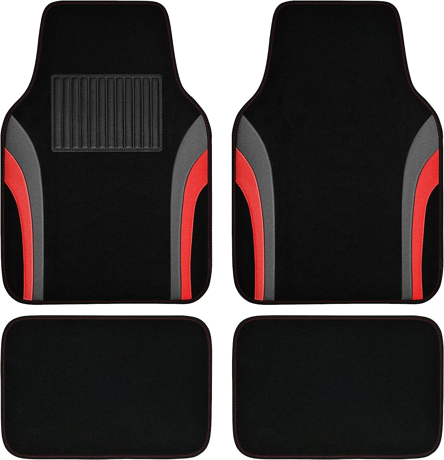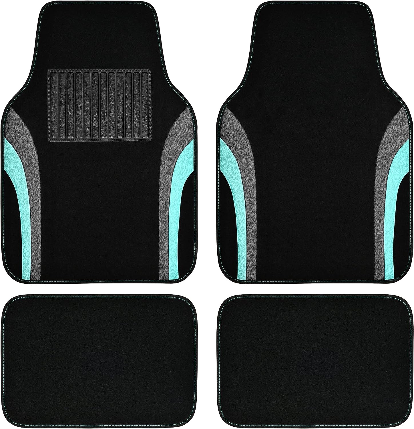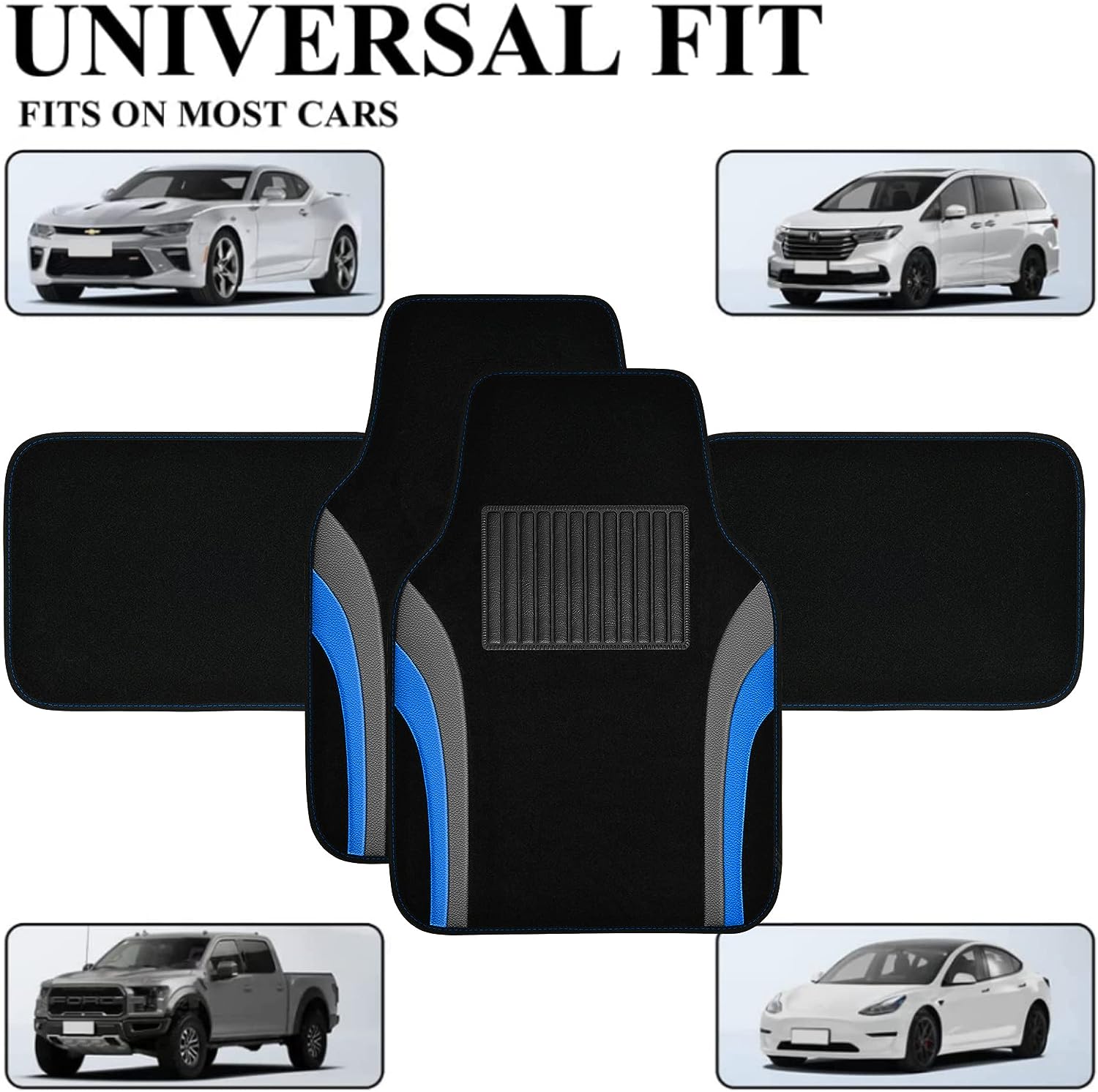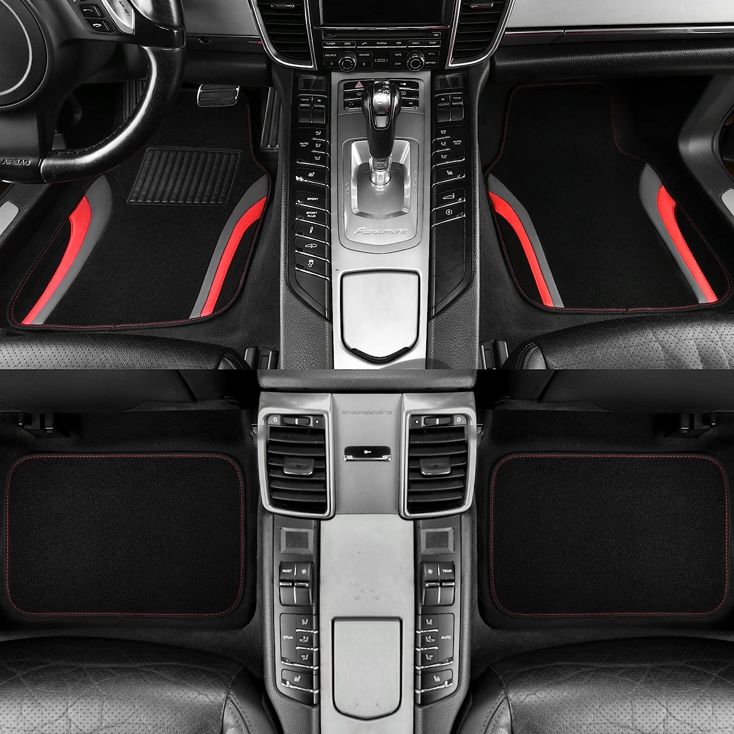 CAR PASS Leather Waterproof Sporty Car Floor Mats Carpet,Universal Automotive Floor Mat Fit for Sedans, Cars, Mid Trucks, Vans, SUV, Set of 4 (Black and Gray)