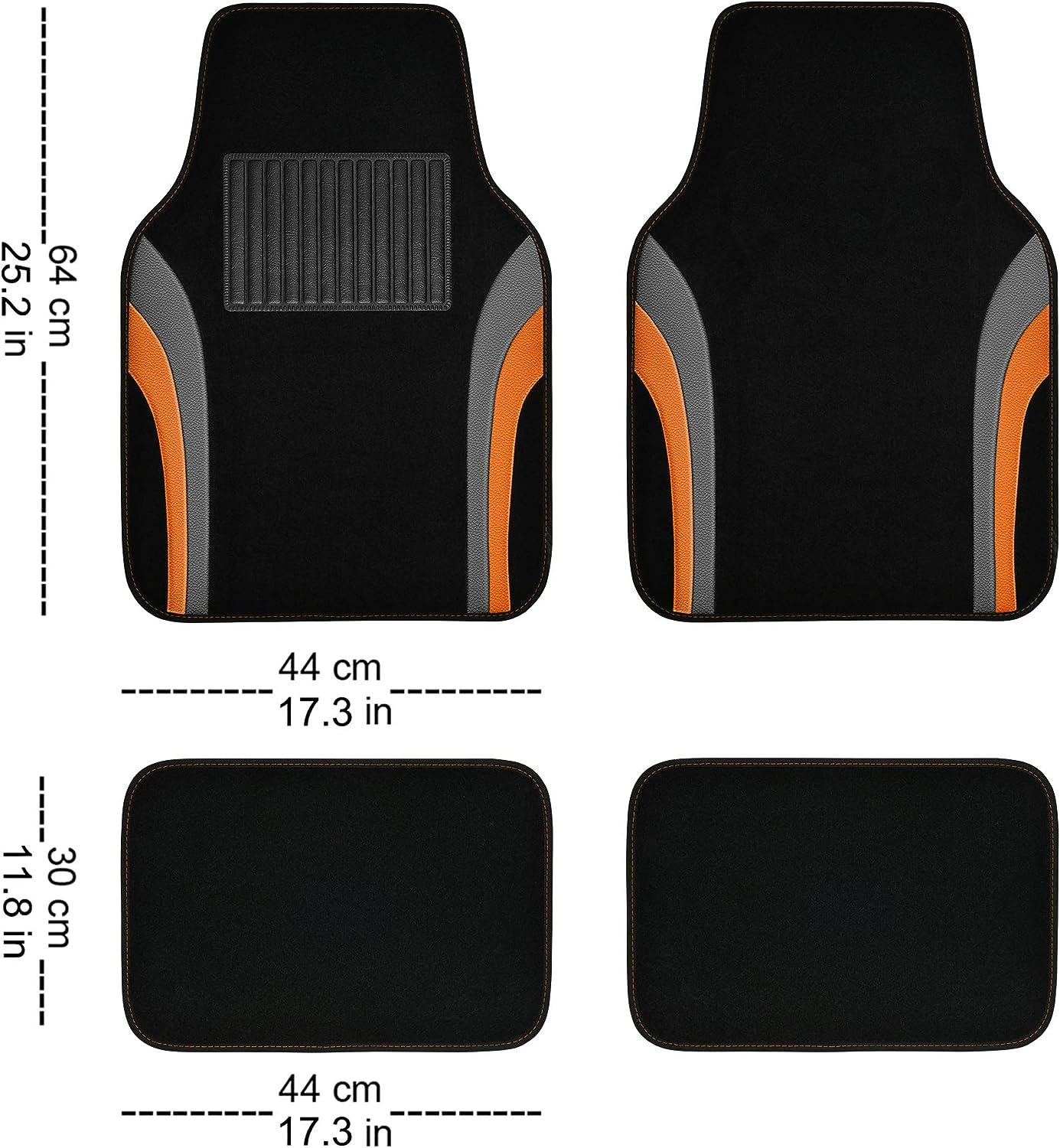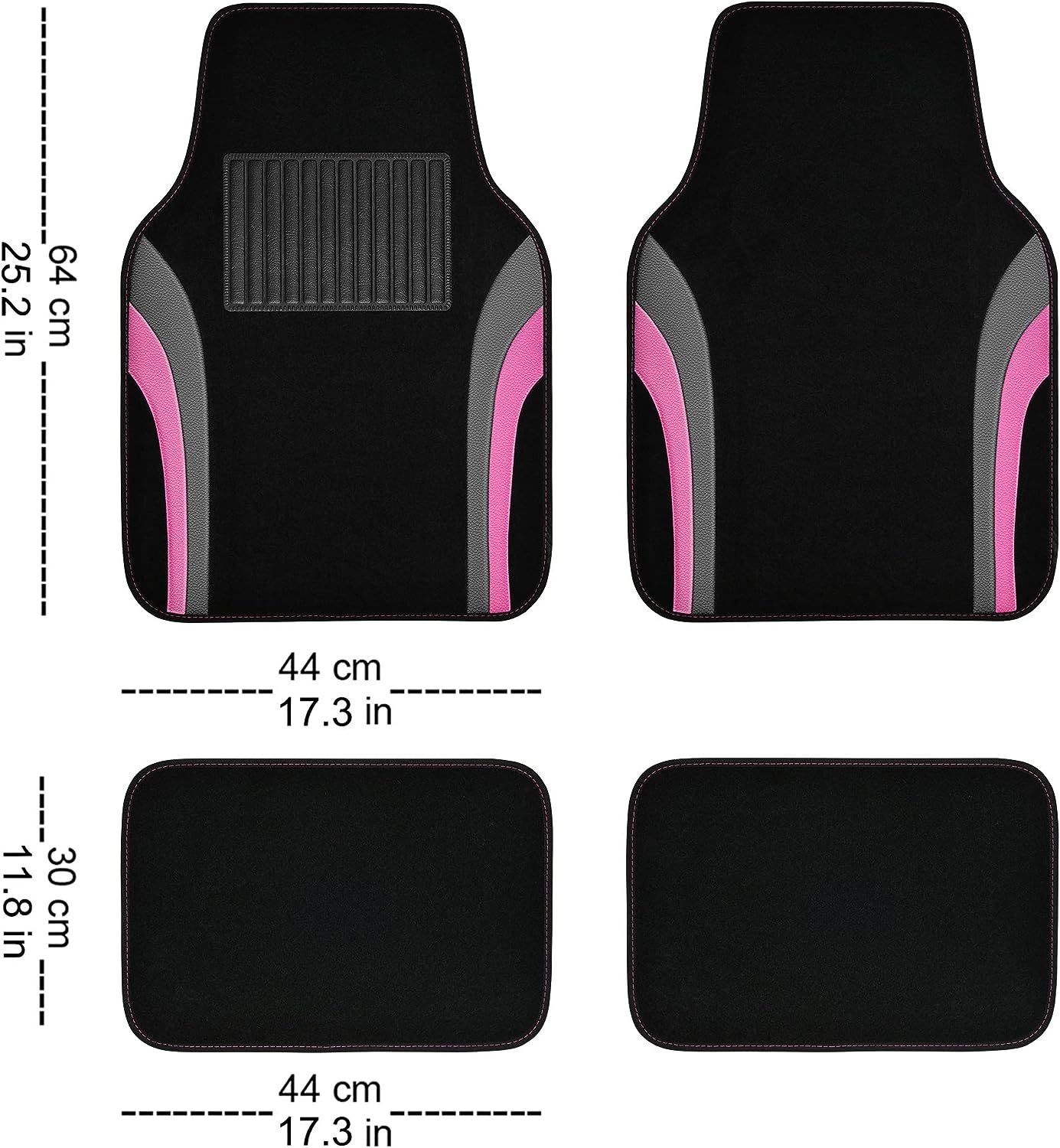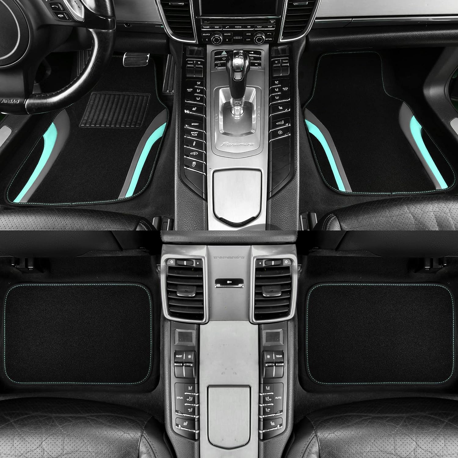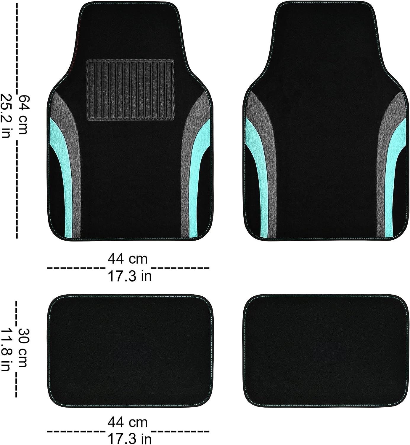 • ALL WEATHER MATS. The car carpet floor mat can be used in rainy and snowy days, there is no leakage about the car floor mat, cause the heel pad is attached closely with the carpet by special technology. Especially, the heel pad is attached with the mat under high temperature, as a result, there is no space between heel pad and mat, and your vehicle wouldn't be wet in rainy day.