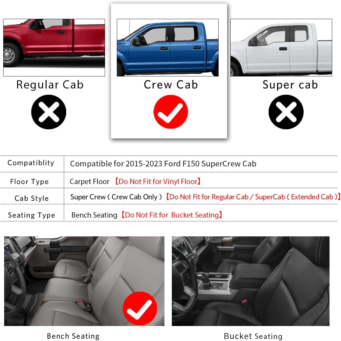YITAMOTOR Floor Mats Compatible with 2015-2023 Ford F-150 / F150 Lightning SuperCrew Cab (Not Fit Rear Seat with Under-Seat Fold Flat Storage), 1st & 2nd Row All Weather Protection
