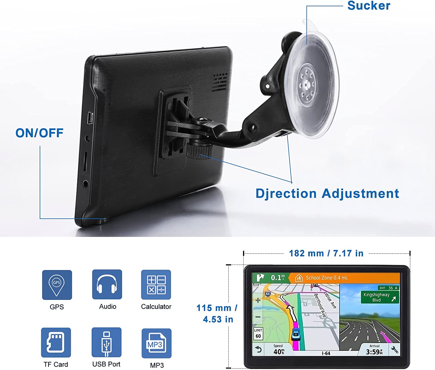 • 【𝐌𝐮𝐥𝐭𝐢-𝐯𝐞𝐡𝐢𝐜𝐥𝐞 𝐬𝐮𝐩𝐩𝐨𝐫𝐭】 Portable GPS navigation is suitable for car pedestrian bicycles and motorcycles. It also applies to truck ambulances, so this universal GPS can handle any mode of travel. Solve the hassle of your route, it can help you choose the route that works best for you.