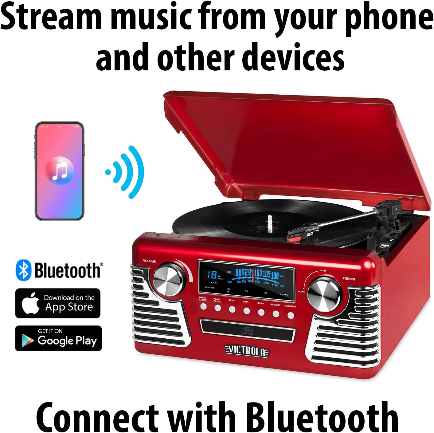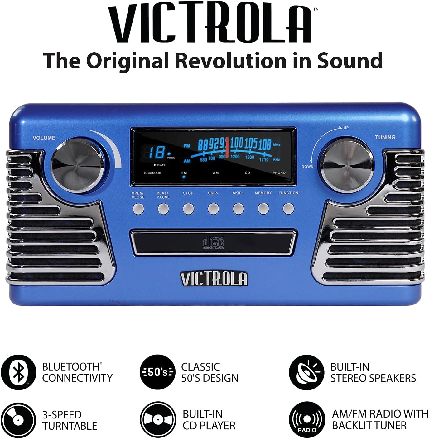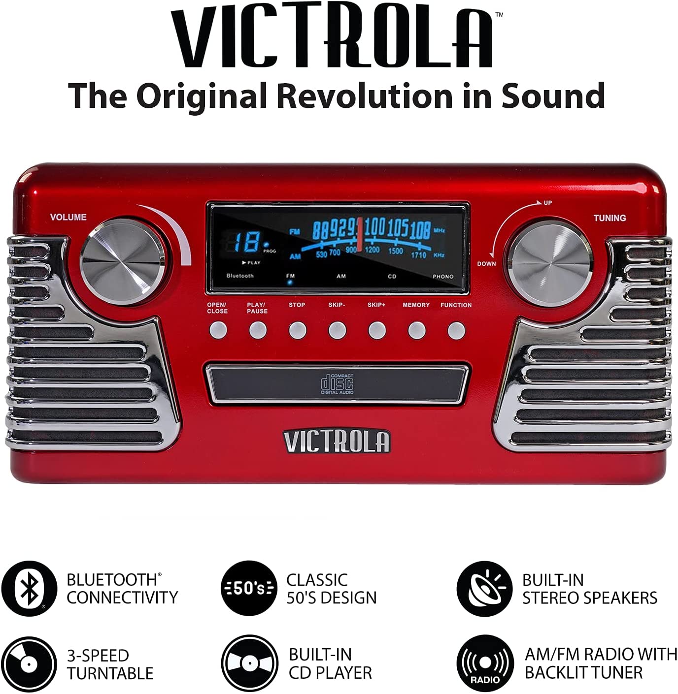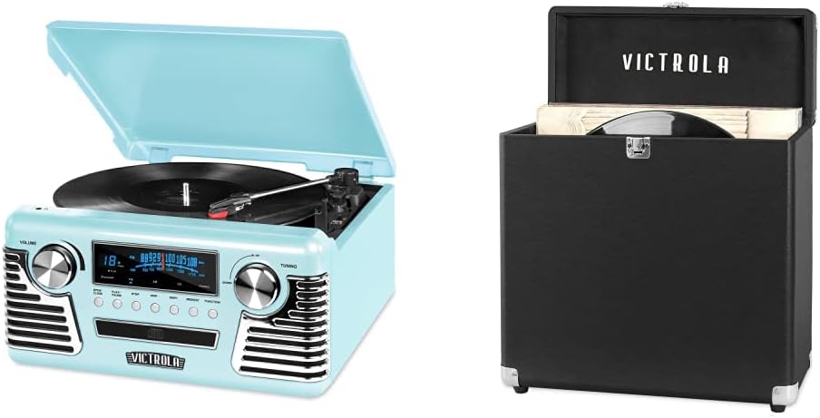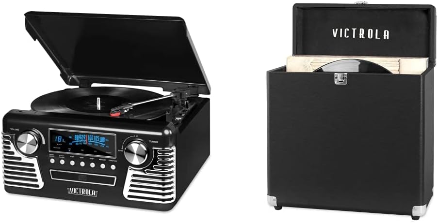 Victrola 50's Retro Bluetooth Record Player & Multimedia Center with Built-in Speakers - 3-Speed Turntable, CD Player, AM/FM Radio | Vinyl to MP3 Recording | Wireless Music Streaming | Black