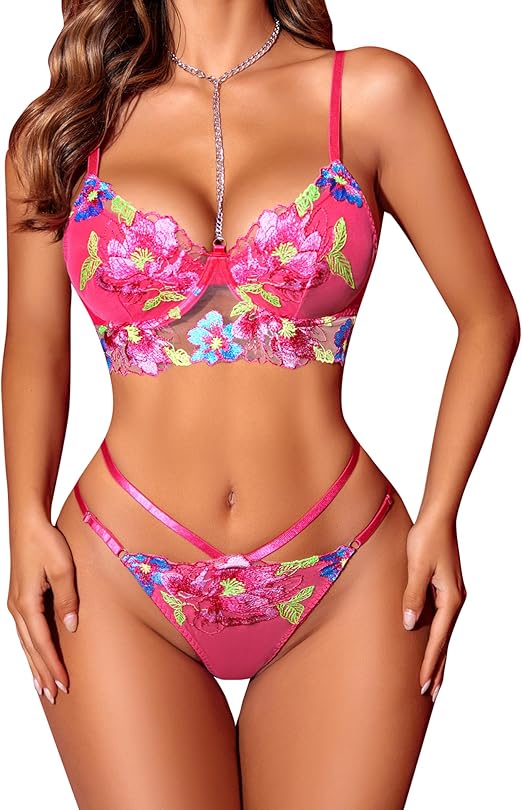 Avidlove Women Floral Embroidery Underwire Lingerie Set Set Sexy Bra and Panty Set