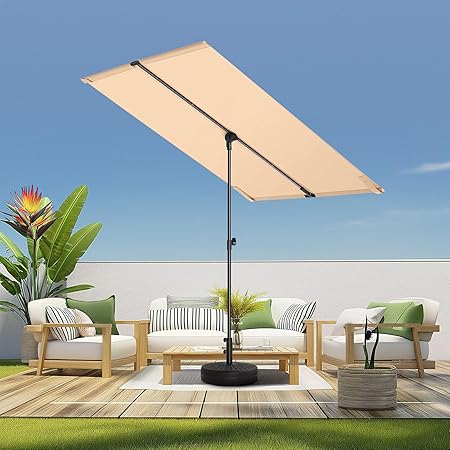 6x4ft Outdoor Balcony Umbrella - Flat Porch Pool Patio Umbrella Rectangular Canopy Shade UPF50+ UV Protection 360«� Rotating & Tilting All Angles Applicable (Beige)