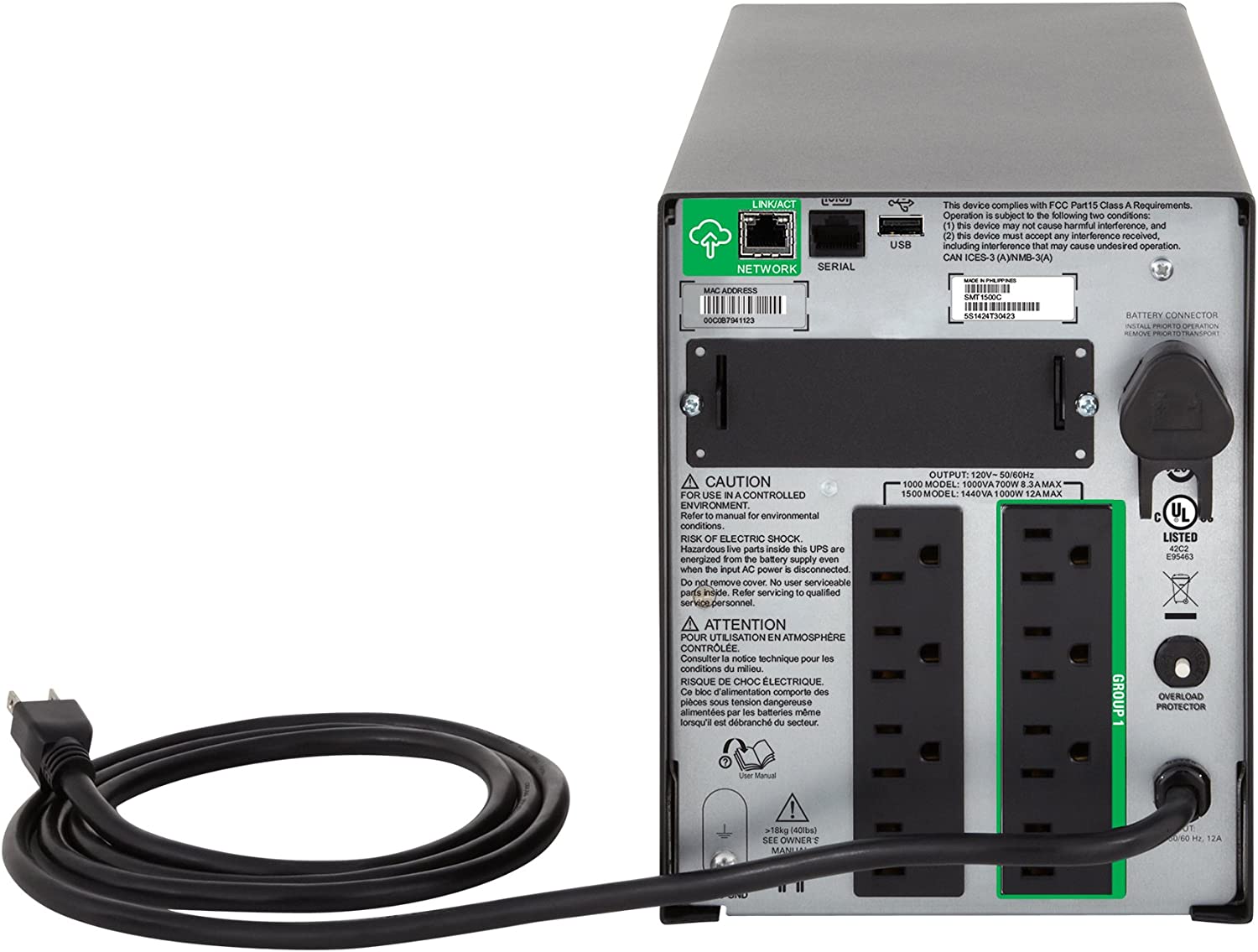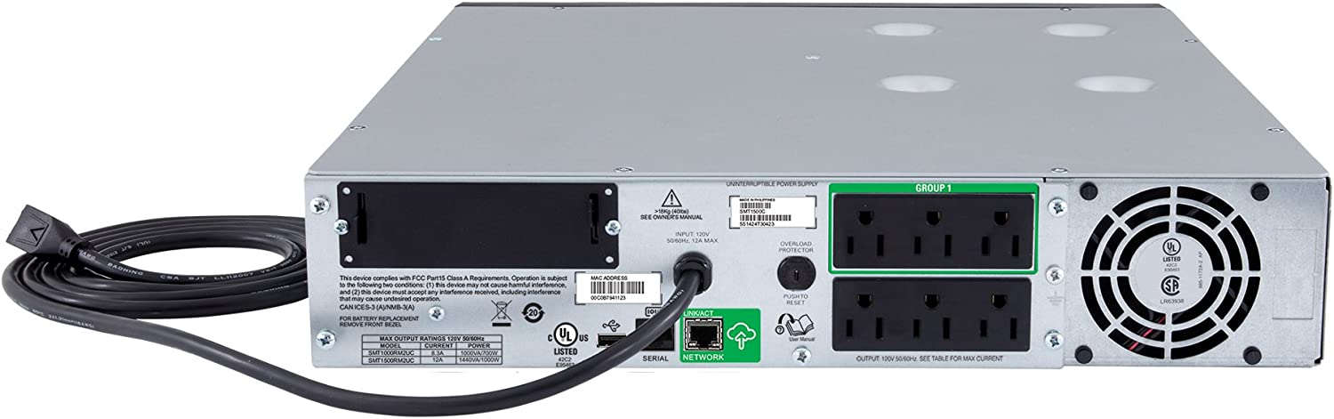 Protect your servers, switches, routers and networking devices with the Smart-UPS SMT750RM2UC rackmount UPS with APC SmartConnect, the first cloud-enabled UPS for distributed IT. The SMT750RM2UC rackmount UPS provides backup battery power in the event of a power outage, while safeguarding your equipment from harmful power conditions, spikes and surges. The included cloud monitoring feature (service-free, no fees required) is accessible from any internet connected device, and maximizes the life and performance of your UPS by providing proactive advice and life-cycle recommendations so you can remotely monitor your power infrastructure from anywhere in the world. Automatic green mode ensures you are operating at the highest levels of efficiency, and intelligent battery management provides real-time monitoring and management through temperature-compensated charging that extends the life of the battery. With a 700-watt power capacity, battery-backup and surge protection on six outlets, with one switchable outlet group, this UPS is ideal for small and medium sized-businesses.