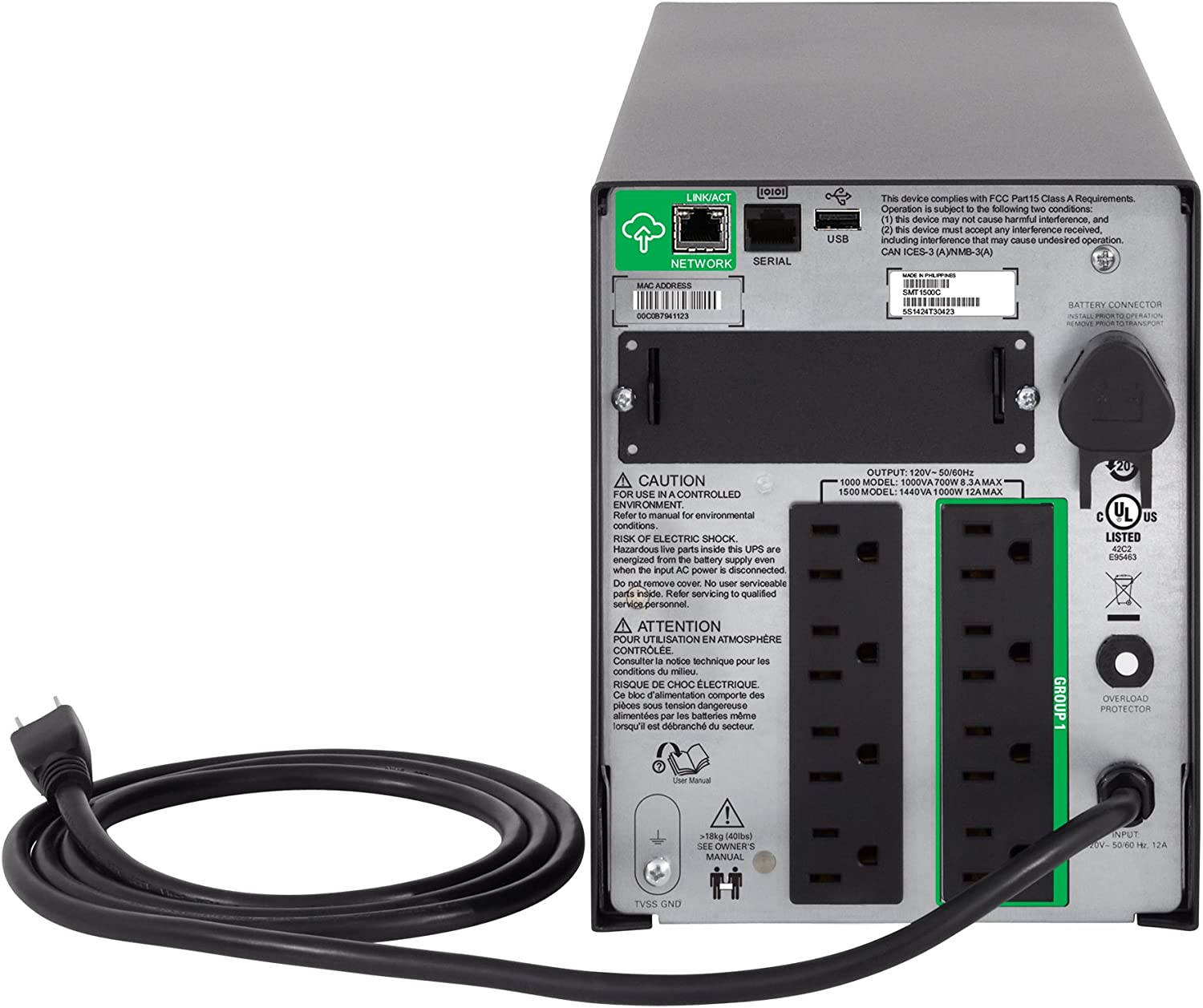 Protect your servers, switches, routers and networking devices with the Smart-UPS SMT3000C with APC SmartConnect, the first cloud-enabled UPS for distributed IT. The SMT3000C UPS provides backup battery power in the event of a power outage, while safeguarding your equipment from harmful power conditions, spikes and surges. The included cloud monitoring feature (service-free, no fees required) is accessible from any internet connected device, and maximizes the life and performance of your UPS by providing proactive advice and life-cycle recommendations so you can remotely monitor your power infrastructure from anywhere in the world. Automatic green mode ensures you are operating at the highest levels of efficiency, and intelligent battery management provides real-time monitoring and management through temperature-compensated charging that extends the life of the battery. With a 2700-watt power capacity, battery-backup and surge protection on six outlets, with one switchable outlet group, this UPS is ideal for small and medium sized-businesses. Operating Temperature : 32 - 104 °F (0 - 40 °C)