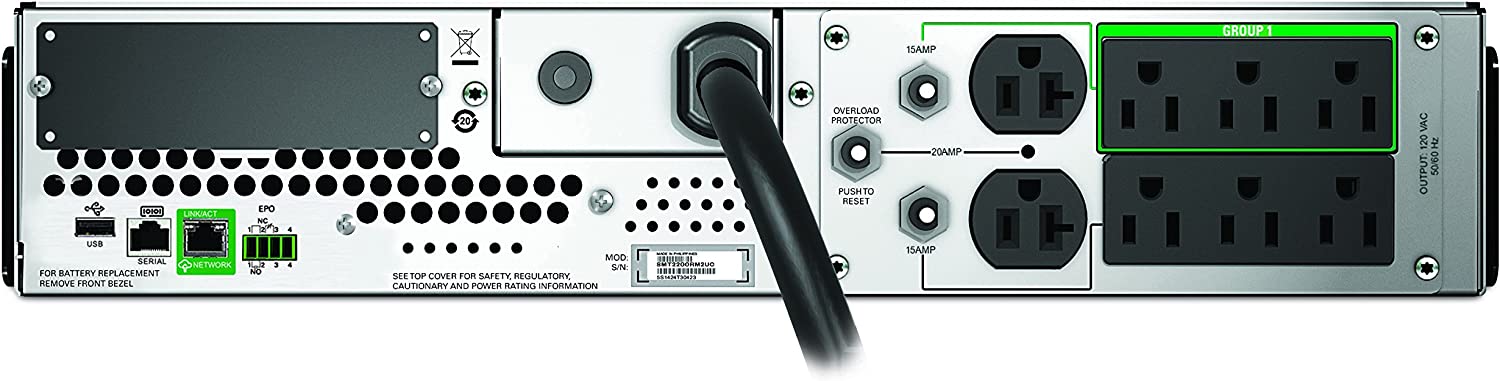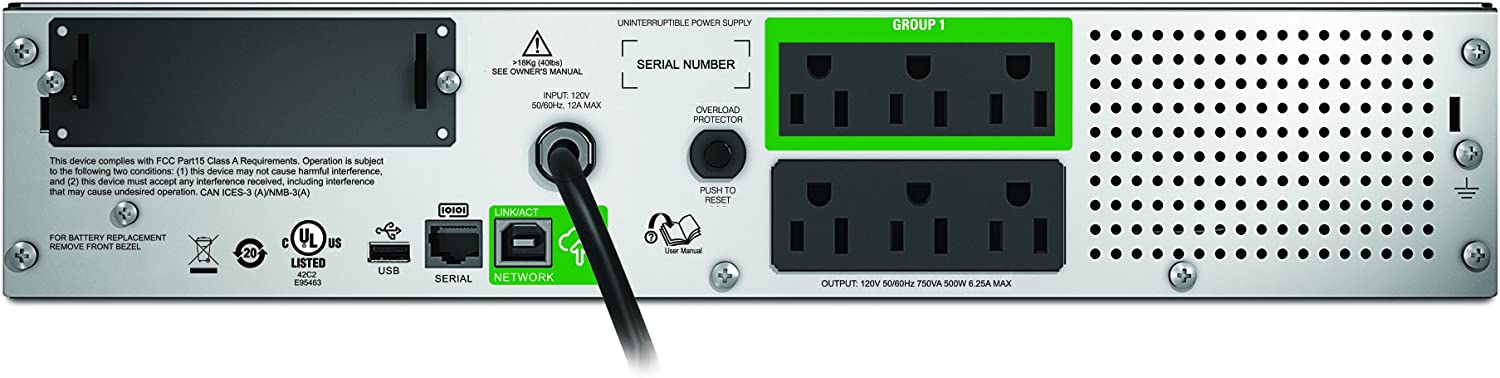 Protect your servers, switches, routers and networking devices with the Smart-UPS SMT750C with APC SmartConnect, the first cloud-enabled UPS for distributed IT. The SMT750C UPS provides backup battery power in the event of a power outage, while safeguarding your equipment from harmful power conditions, spikes and surges. The included cloud monitoring feature (service-free, no fees required) is accessible from any internet connected device, and maximizes the life and performance of your UPS by providing proactive advice and life-cycle recommendations so you can remotely monitor your power infrastructure from anywhere in the world. Automatic green mode ensures you are operating at the highest levels of efficiency, and intelligent battery management provides real-time monitoring and management through temperature-compensated charging that extends the life of the battery. With a 500-watt power capacity, battery-backup and surge protection on six outlets, with one switchable outlet group, this UPS is ideal for small and medium sized-businesses.