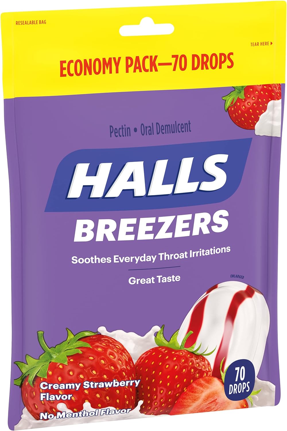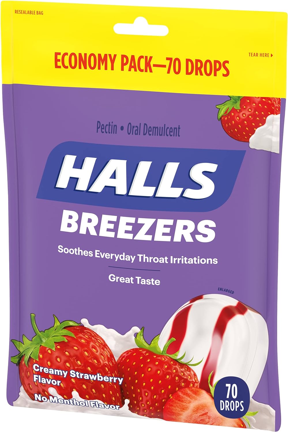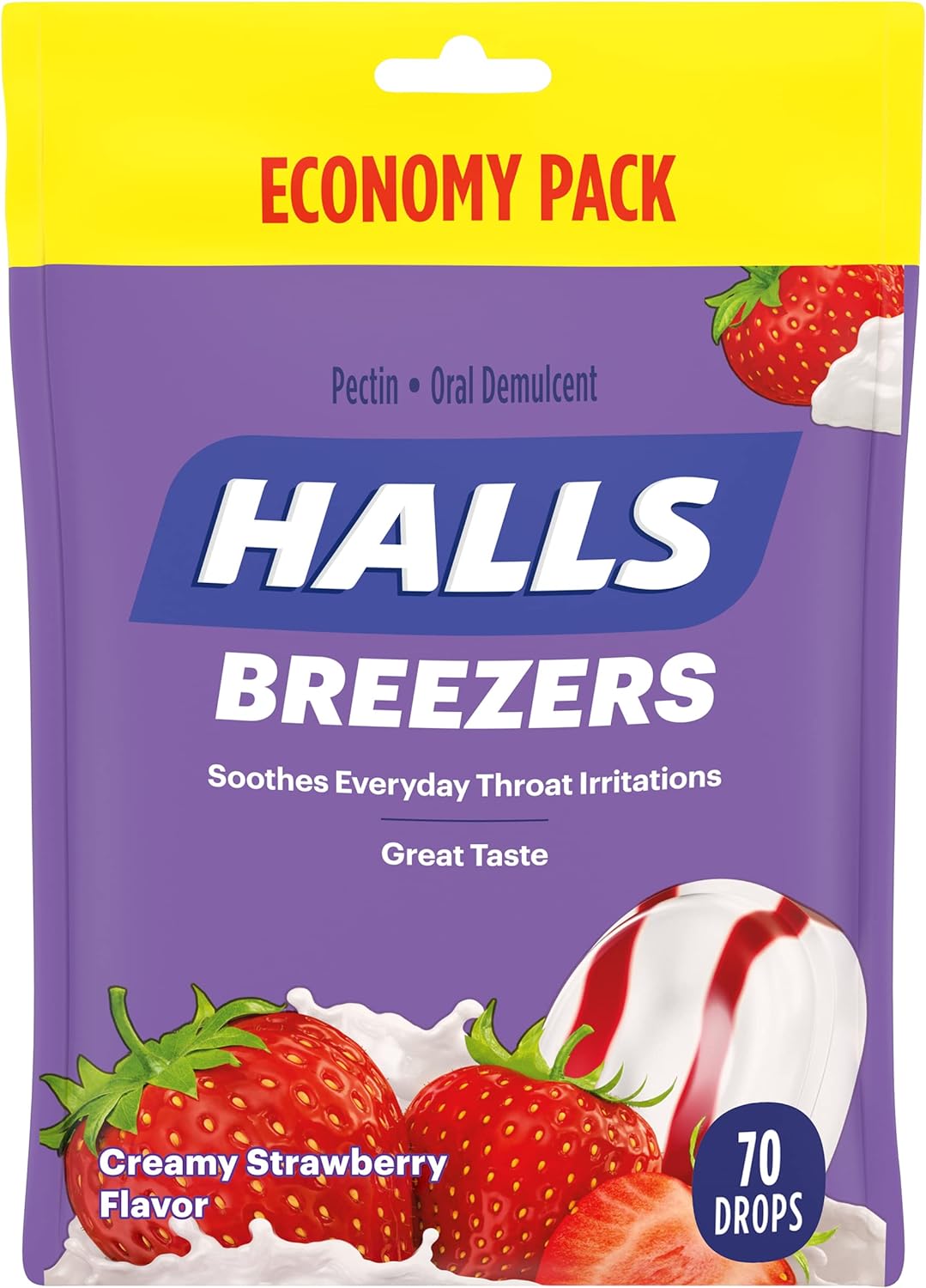 Halls Breezers Creamy Strawberry Throat Drops, Economy Pack, 70 Drops