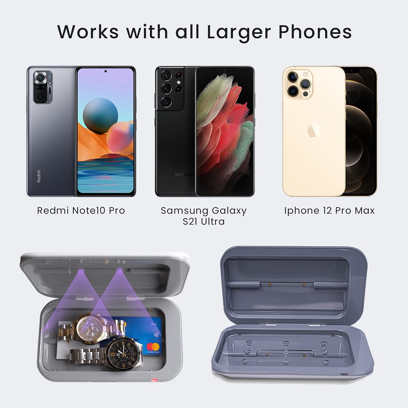 If you need a UV phone sanitizer, this is the perfect device for you. Its curved edges give it that soft and elegant look, while powerful UV-C LED lights within provide unmatched sanitization power. It's as versatile as it is attractive - it can fit any item within 6-7 inches and sanitizes for only 6 minutes. Getting this chemical-free alternative to traditional sanitizers is probably one of the best decisions you will make this year.