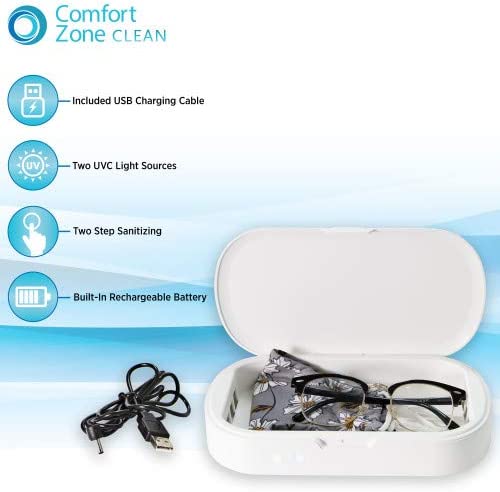 • LARGE CAPACITY: Sanitize smartphones up to 7-1/2 inches, or other items such as glasses, wallets, keys, smart watches, and a multitude of smaller objects such as jewelry or ear buds. Take this unit on the go with the built-in rechargeable battery, and sanitize your items away from the home!