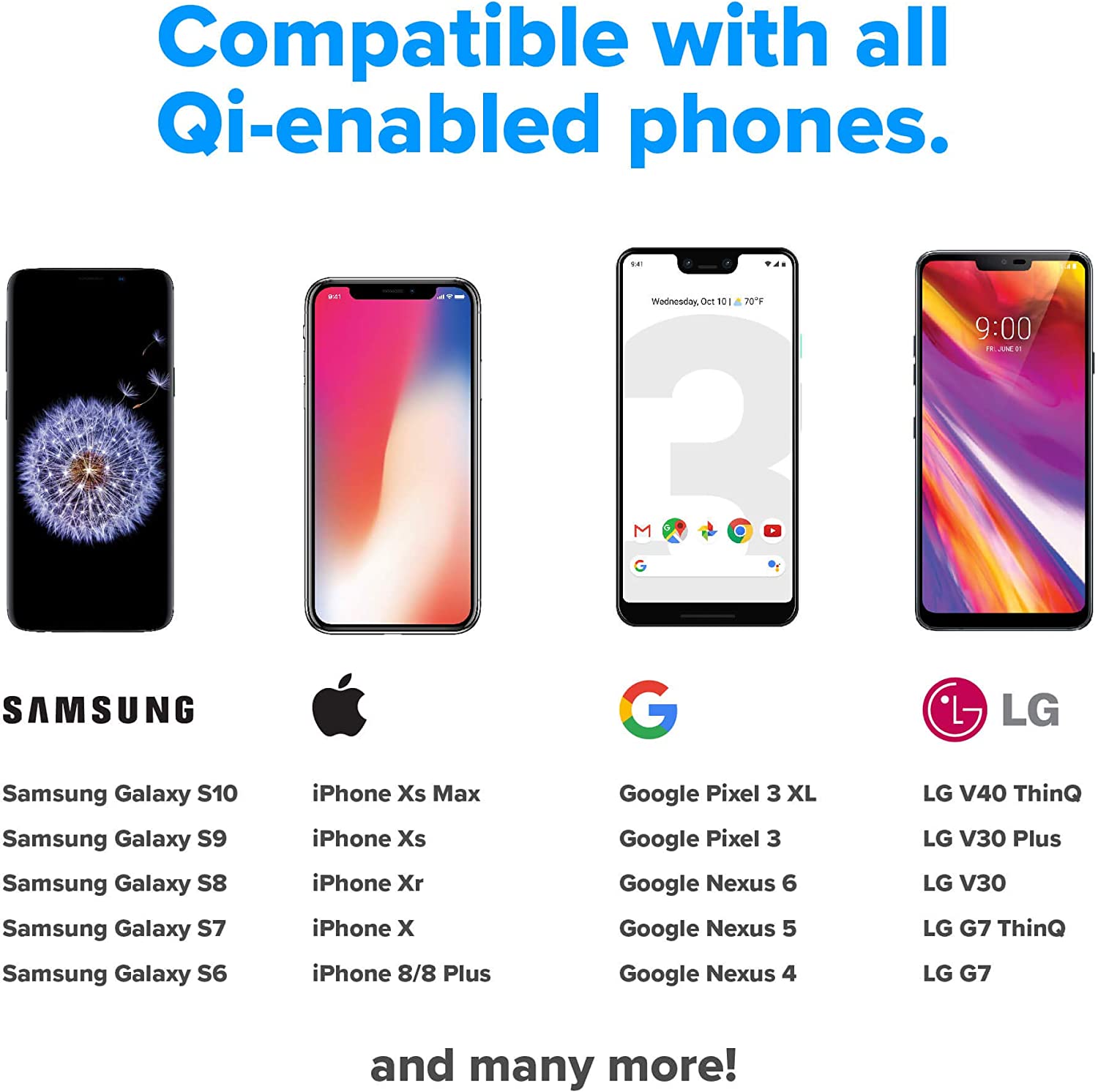 • Effortless Phone Charger; PhoneSoap Wireless was built to accommodate all smartphones, including larger models like the iPhone 8+ and the Galaxy S10+. The wireless charging will only apply to Qi-enabled smartphones, but the USB port in the back of the unit offers universal charging to all devices.