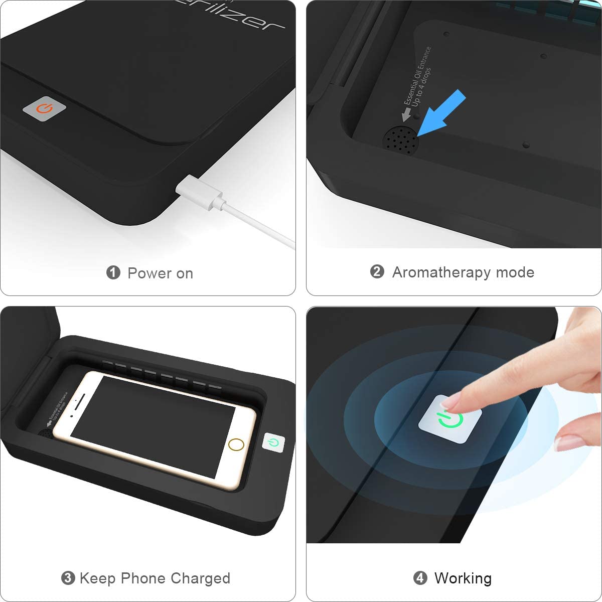 • ▶Aromatherapy Function-Not only does the cell phone sanitizer can keep your belongs germ free, but also the uv sterilizer works like an aromatherapy diffuser. Simply add couple of your favorite aroma drops into inside, your phone will be freshen while sanitizing.