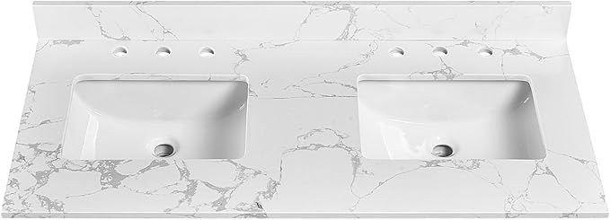 48"x22" Vanity Top with Sink, Engineered Stone Vanity Top with Rectangular Undermount Ceramic Double Sink, 8 Inch Faucet Hole Spacing with Backsplash Countertops for Bathroom