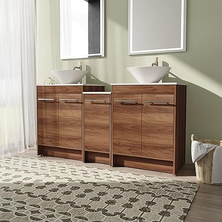 60" Bathroom Vanity with Sink, 60 Inch Freestanding Bathroom Vanity, Double Sinks Bathroom Vanity Combo, Modern Bathroom Vanity, Brown Floor Standing Cabinet Set(054-BASIN217)