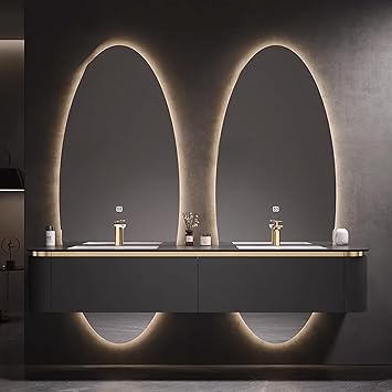 60IN Double Sink Bathroom Vanity - Modern Bathroom Cabinet with One-Touch Defogging & LED Light | 2 Large Round Mirrors, Business Bathroom Vanity (Black)