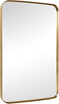 20x30 inch Gold Stainless Steel Metal Framed Bathroom Mirror for Wall Rounded Rectangular Bathroom Vanity Mirror