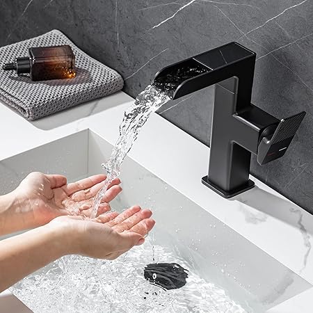 Bathroom Faucets for Sink 1 Hole, Waterfall Faucet for Bathroom Sink, Single Handle Bathroom Faucet with 75 ‘� Swivel Spout, Suqare RV Bathroom Sink Faucet