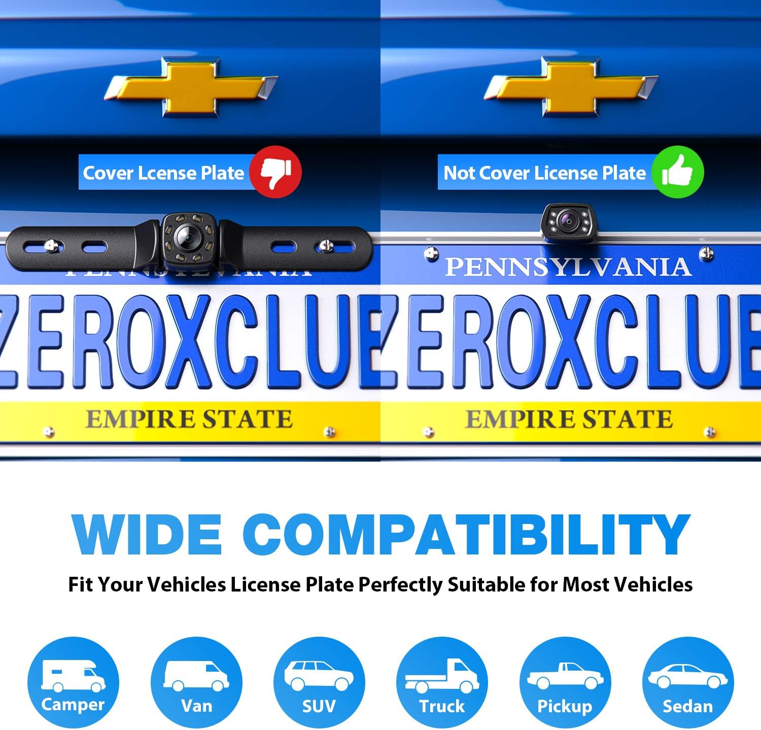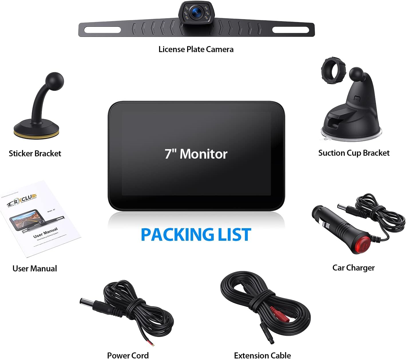 ZEROXCLUB Backup Camera Kit with 7 Inch Monitor, Rear View License Plate Camera, 1080P HD IPS Display for Car Trucks Pickup SUVs Vans RVs, Reversing Camera Night Vision IP69 Waterproof Wide View - B7