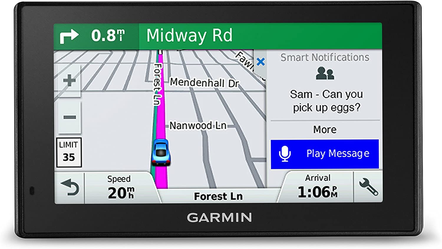 Advanced Navigation with Smart Features Easy-to-use GPS navigator with connected features and bright 5.0-inch capacitive touch display Detailed maps of North America with free lifetime updates Provides real-time services such as live traffic and live parking Bluetooth calling, smart notifications and voice-activated navigation Built-in Wi-Fi for easy map and software updates Stay connected behind the wheel with Garmin DriveSmart, the navigator that features a collection of smart features in addition to helpful driver alerts and easy-to-follow directions. From hands-free calling and live traffic information to built-in Wi-Fi and more - the future is on your Garmin. Just look ahead and drive. Live Services for Your Drive Outsmart traffic jams with time-saving alternate routes or by avoiding them altogether. Then, with live information, spend less time circling the block to look for parking. For traffic alerts, relevant rerouting directions and up-to-date weather forecasts, download the Smartphone Link app, which connects your Garmin DriveSmart with your compatible smartphone. As you near your destination, take the stress out of parking by viewing pricing and availability trends for on-street public parking. The Smartphone Link app also enables LiveTrack, which lets drivers share their location so friends can track your whereabouts whether you are running errands around town or taking a long road trip. Putting the Smart in Smart Connectivity When you sync your Bluet...