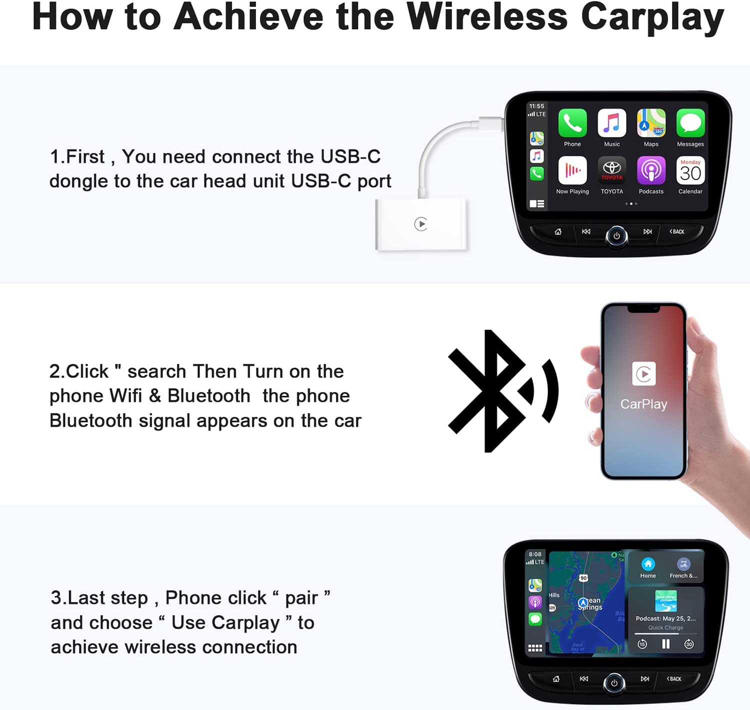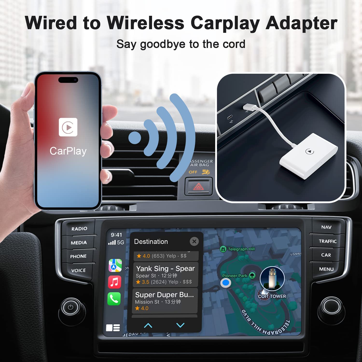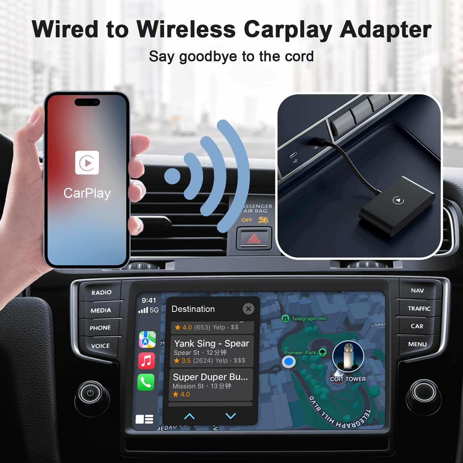 • ✔️Easy to Use:Plug and play design, suitable for all motorists.. Just plug and play, no need for any extra drive, apps, or troublesome system upgrades. After the first setup, our adapter will automatically activate the CarPlay wireless connection every time the car starts. Enjoy setup it up once and for all.