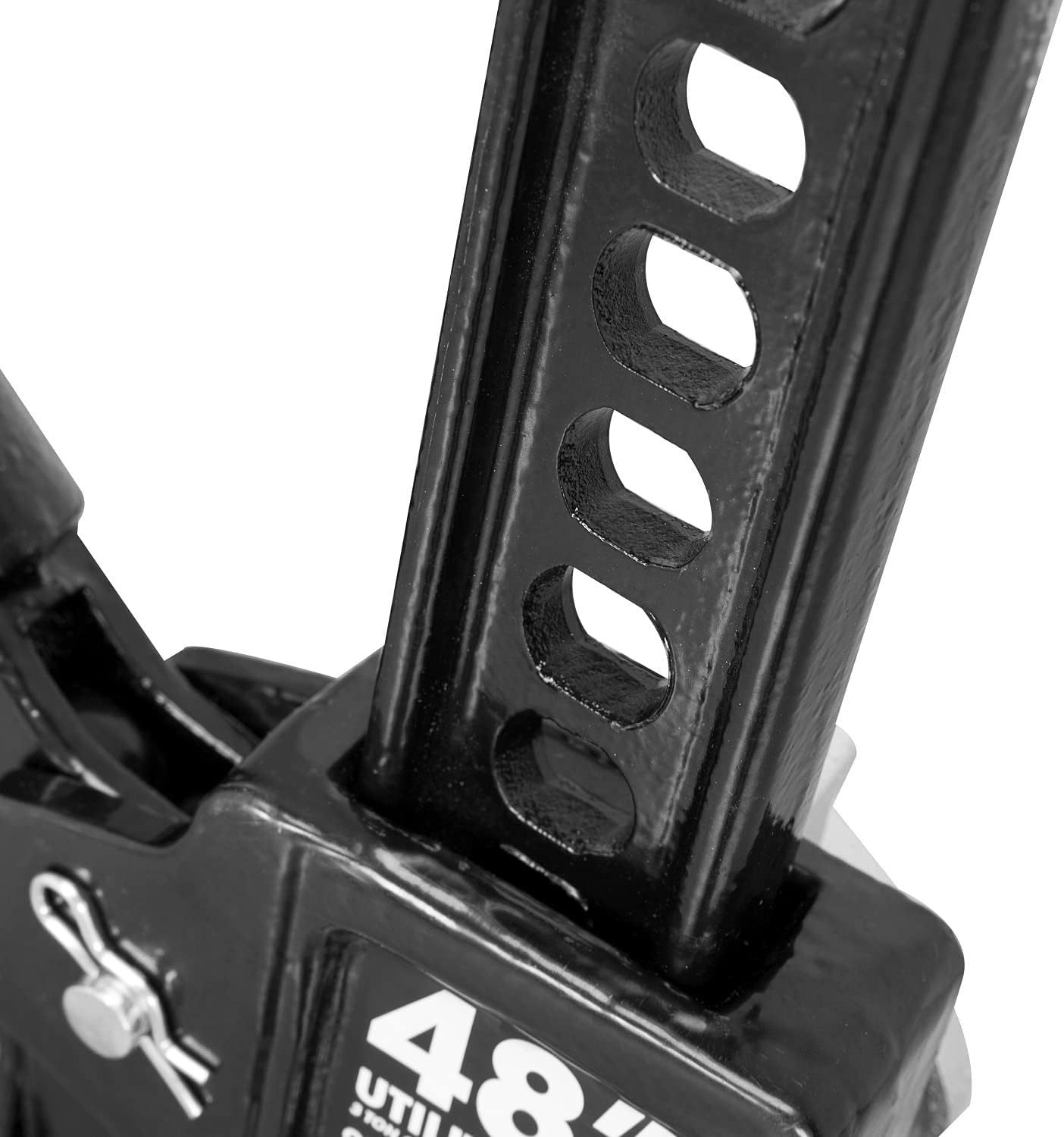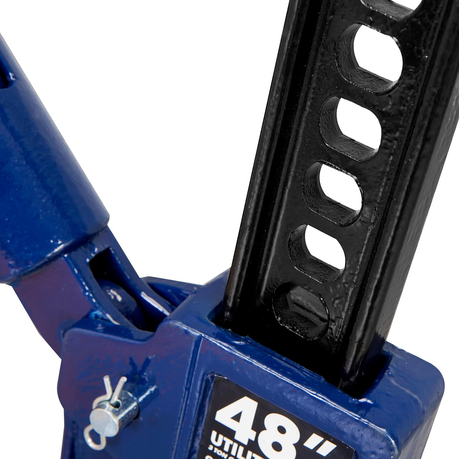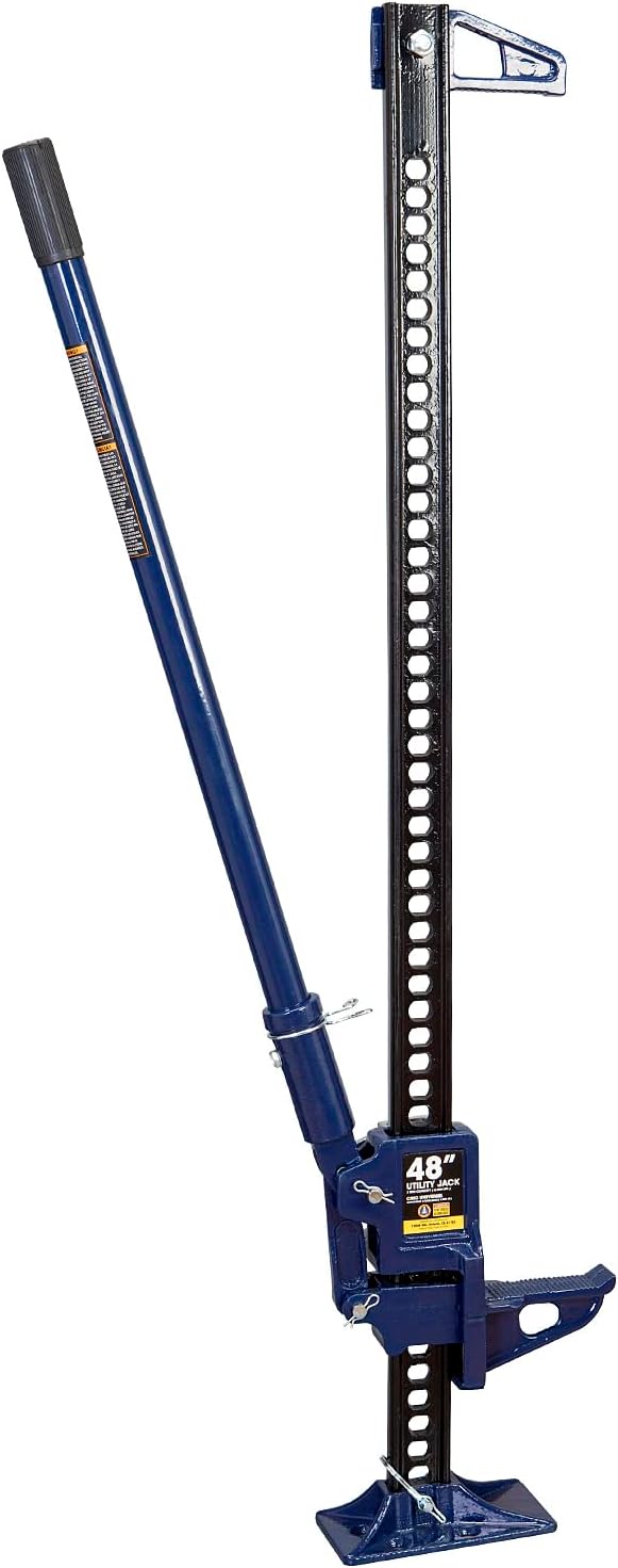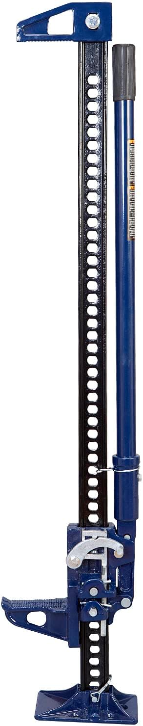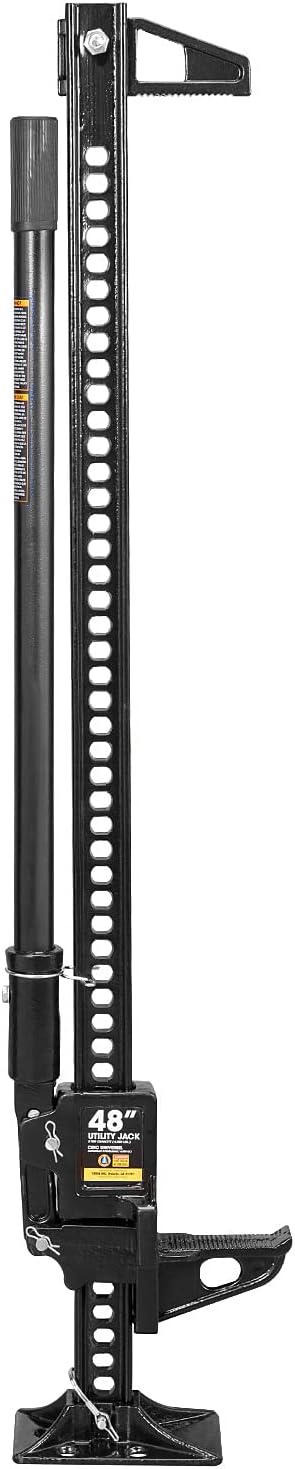 The Torin BIG RED TR6501B ratcheting off-road/utility farm jack is ideal for any application that deals with lifting, pulling, clamping, winching, and spreading. This 48" jack has a lifting range of 5.12" to 40" and a 3 ton (6,000 lb) load capacity. Multi-directional jack is lightweight and designed to be used vertically and horizontally. The rubberized grip on the handle provides comfort and a better hold. An adjustable top clamp clevis can be moved to any position for clamping purposes. Great for off-road and rough environments, farm-related applications, and as an emergency fire and rescue tool. The fast lifting mechanism ensures lifting speed and safety. A thick, wide base delivers added stability. The Torin ratcheting off-road/utility farm jack has a rust-resistant, powder coated finish with zinc-plated hardware. Includes a limited 1 year manufacturer warranty.