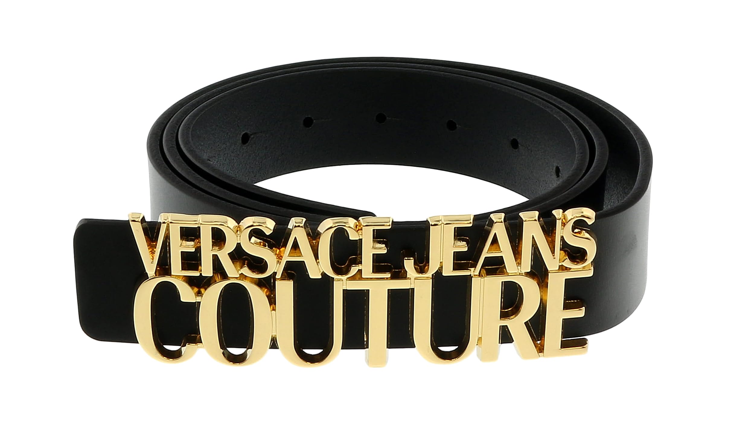 Details: Elevating a polished design with a signature lettering buckle, this Versace Jeans Couture belt makes a sophisticated addition to any gent's accessories edit. Crafted in Italy from genuine leather, the refined piece pairs effortlessly with suiting and denim alike.