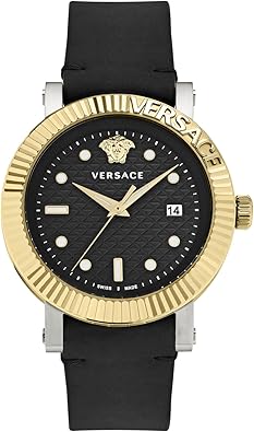 Versace V-Classic Collection Luxury Mens Watch Timepiece with a Black Strap featuring a Two Tone Case and Black Dial