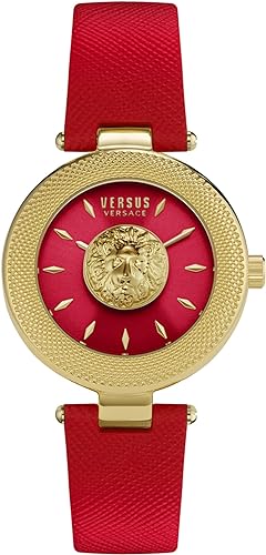 Versus Versace Brick Lane Collection Luxury Womens Watch Timepiece with a Red Strap featuring a Red Case and Red Dial