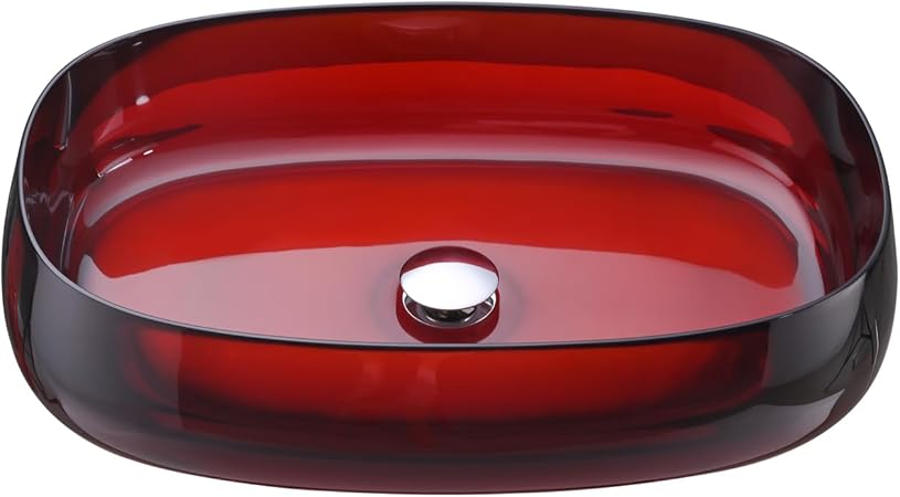 Bathroom Vessel Sink, 23" x 15" Oval Vessel Sink, Red Translucent Resin Vessel Sink with Pop Up Drain, Above Counter Bathroom Sink
