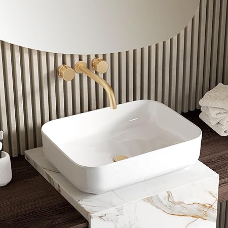 Rectangle Vessel Sink, White Ceramics Countertop Bathroom Sink, Stylish and Functional-19.7"X15.2"X5.4_„� (Without Sink Drain)