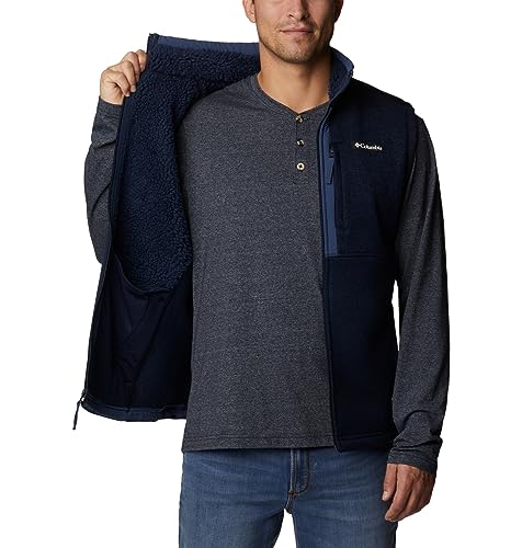 Details: This vest is just what you need for chilly days or extra warmth under a jacket. Made from soft sweater face fleece with a sherpa lining and a zip chest pocket. Columbia offers this vest in multiple colors and sizes. Regular fit.