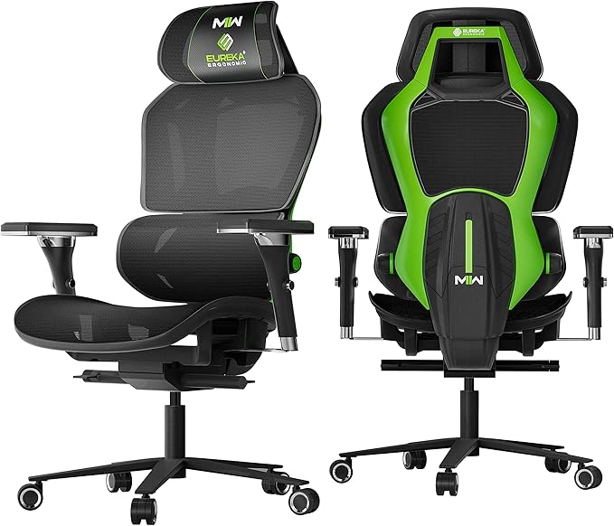 EUREKA ERGONOMIC Office Gaming Chair, Mesh Gaming Desk Chair with Adjustable Lumbar Support, Call of Duty___ Office Chair with 4D Armrest, High Back Comfortable Gaming Computer Chair, Black Green